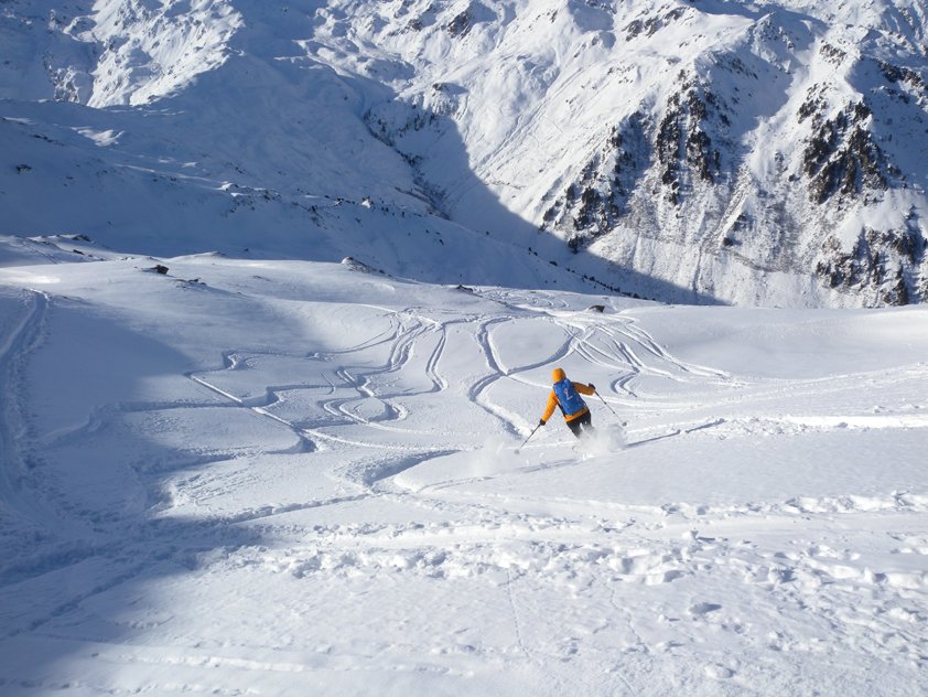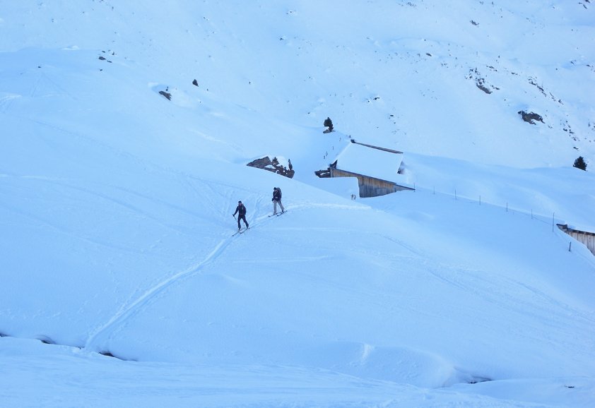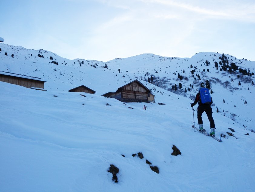 Abfahrt wie Aufstieg. Div. Abfahrtsvarianten sind bei sicheren Schneeverhältnissen möglich.