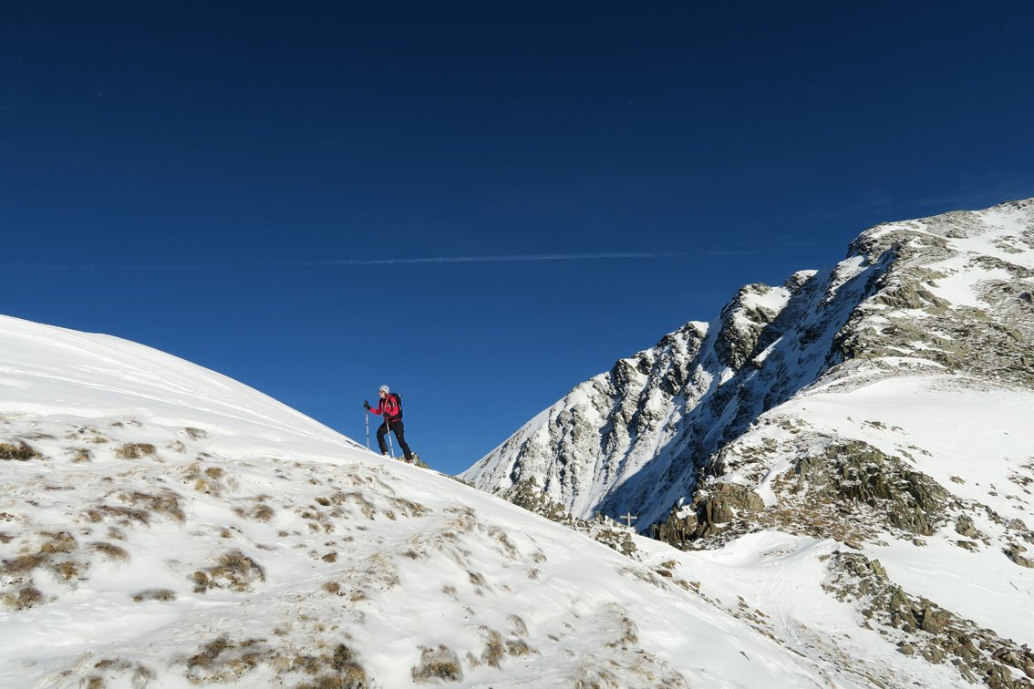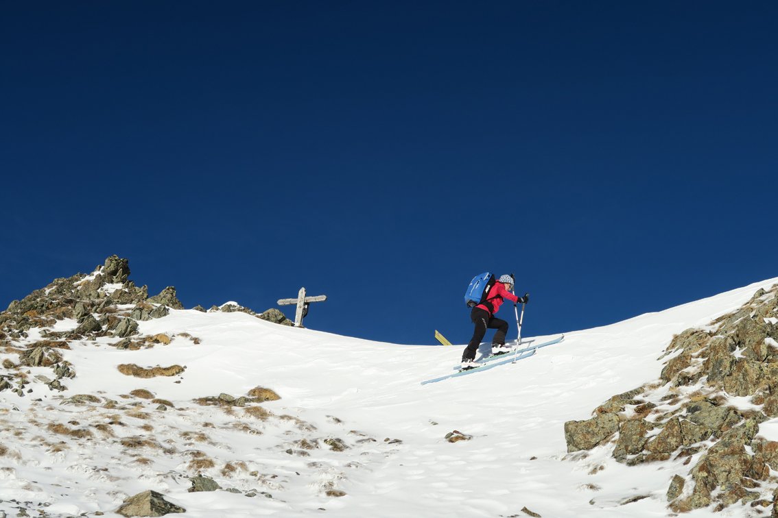 Vom Parkplatz (vor der Brücke) Richtung Nordwesten in das Klammbachtal. Auf der östlichen Talseite taleinwärts, dort wo das Tal dann enger wird, schwenkt man meist auf die westliche Bachseite. Nach einem Flachstück dreht man nach rechts und steigt auf schönen Hängen zu einem Wegweiser (2300 m) auf, dort nach links (Nordwesten) bis man das Kreuzjoch erreicht. Vom Joch nach links, bis man zum steiler werdenden Gipfelgrat kommt. Je nach Verhältnissen noch mit Skiern höher, den letzten Teil des Grates geht man meist zu Fuß.