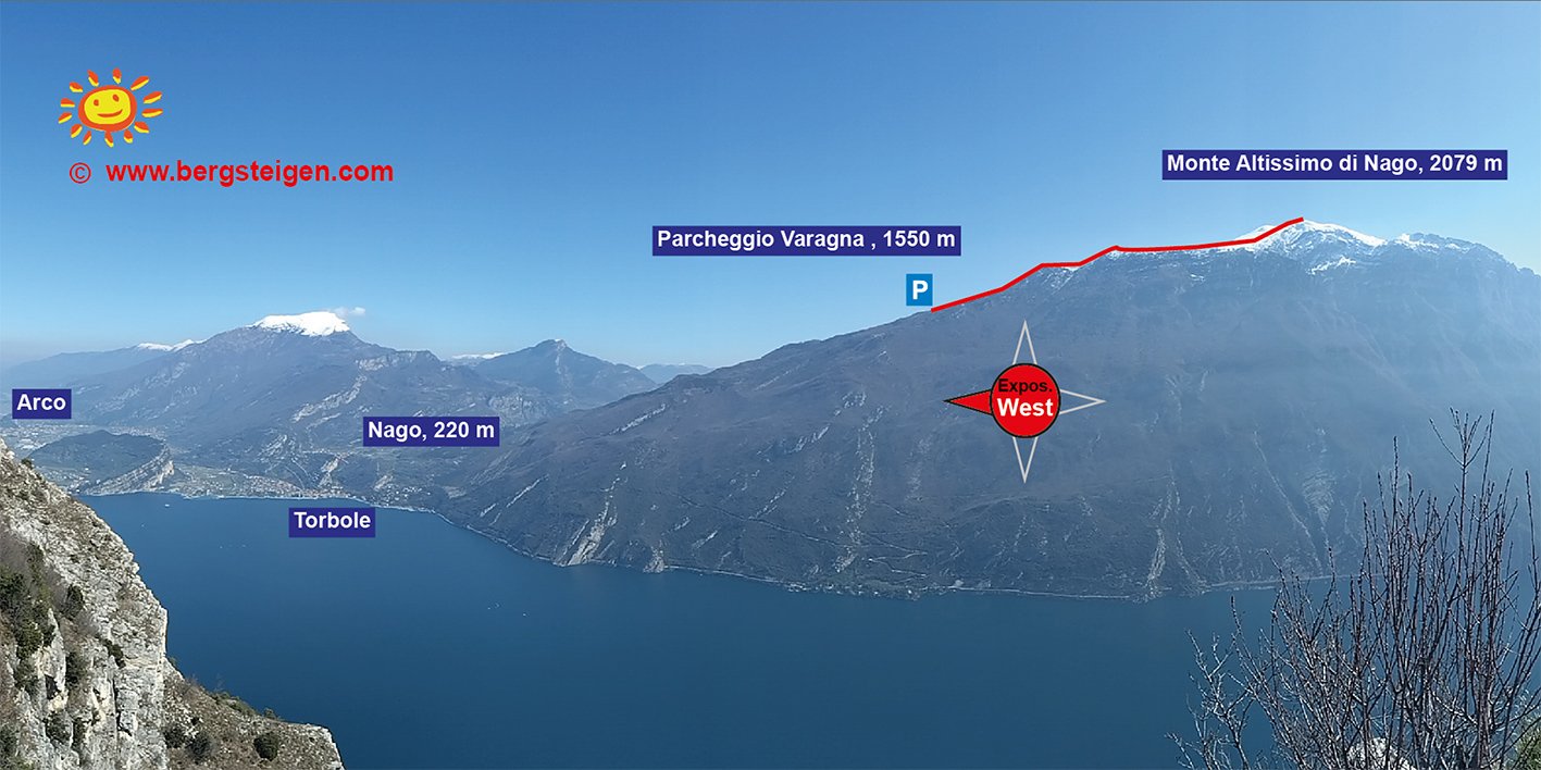 Der Monte Altissimo di Nago ist einer der nördlichsten Gipfel des Monte Baldo Kammes. Von Nago (Monte Baldo Straße) aus kann man den bei guter Schneelage auch mit Tourenskiern besteigen. Diese Skitour wird vor allem gerne im Frühjahr gemacht, vom Gipfel hat man einen perfekten Blick auf den nördlichen Gardasee.