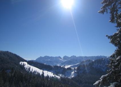 Alternativ kann man in östlicher Richtung zur Priener Hütte (ganzjähr. bewirtschaftet) abfahrt und über die Forststraße zurück zur Talalm.