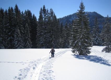 a) Von Sachrang: Vom Parkplatz über die Langlaufloipe und der Forststraße (Rodelbahn) folgen. Bei der ersten Kehre, kommt von links die Spur von Huben dazu, weiter bis zur Talalm (erste Wiese). Hier geht man links über die Wiese und schneidet die Straße ab. Nach der Talalm folgt man der Straße noch rd. 300 m und verlässt diese bei der ersten Waldschneise nach links. Über Weisen aufwärts zur Schreckalm. Hier waagrecht nach rechts queren und die erste waldfreie Möglichkeit links hinauf bis unter den Grat. Nun rechts bis zum Gipfel.
