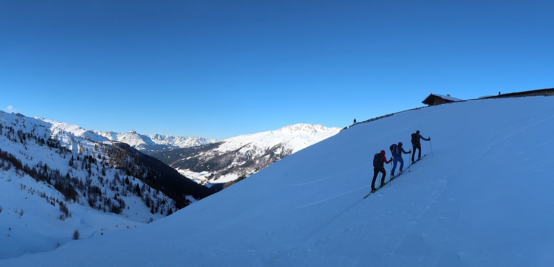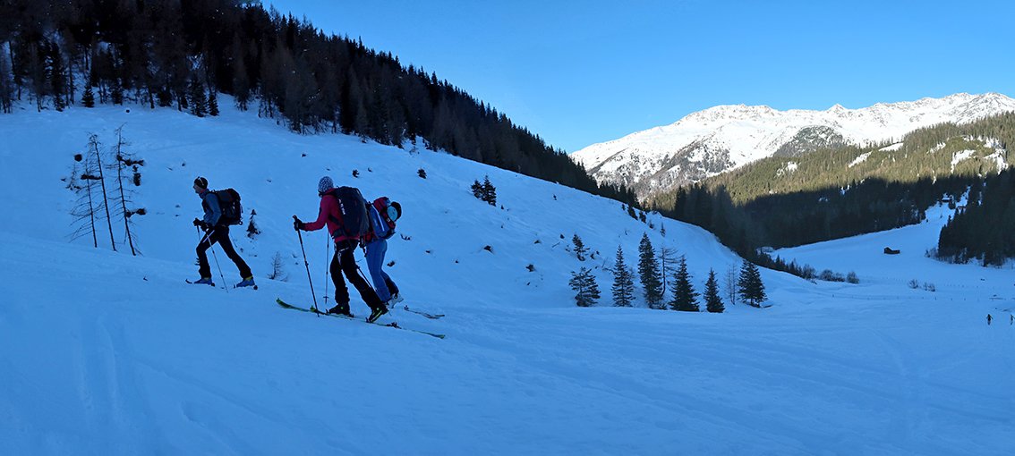 Das Naviser Kreuzjöchl ist vermutlich der beliebteste Skitourenberg im Navis Tal - vorbei an der Naviser Hütte zieht an guten Tourentagen eine Hundertschaft in Richtung Gipfel. Den Anstieg direkt - bei der Naviser Kirche beginnend, vorbei an der Möslalm über den Südrücken - kennen nur die wenigsten. Die unterhalb des Westrückens etwas steilere Tour verspricht wegen der schattigen Lage schönen Pulvergenuss - lohnender Anstieg abseits der Massen auf einen top Skitourengipfel!