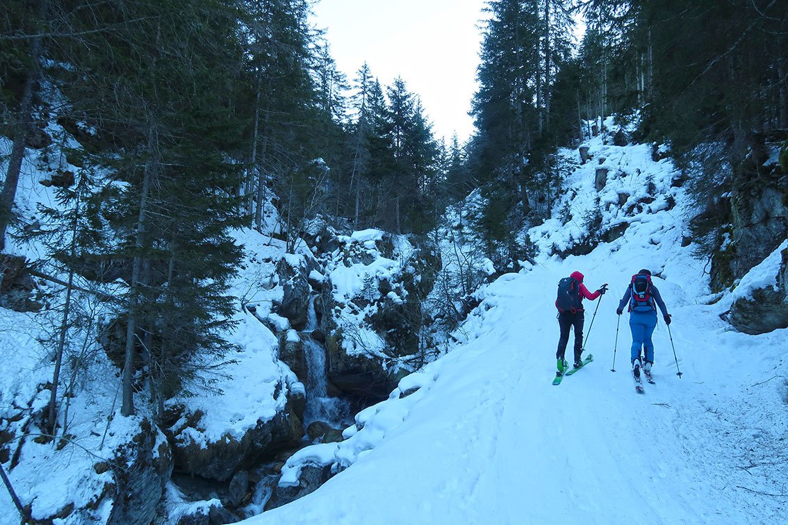 Die Tour nur bei sicheren Schneeverhältnissen durchführen! Die Rinne bzw. der Hang hinauf zum Südrücken sind steil!