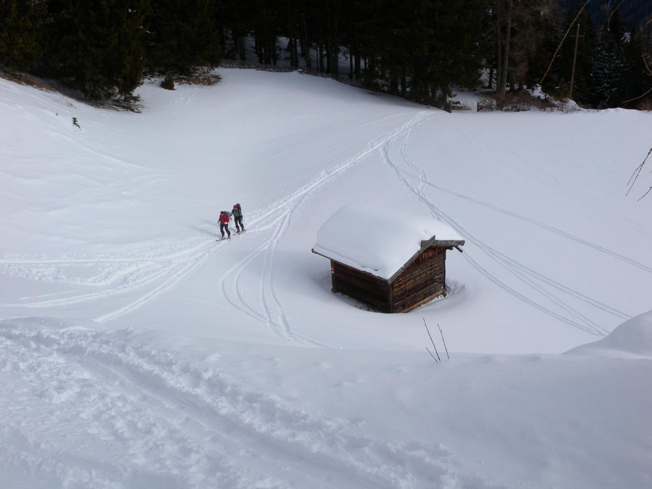 Abfahrt wie Aufstieg - oben viele Varianten möglich.