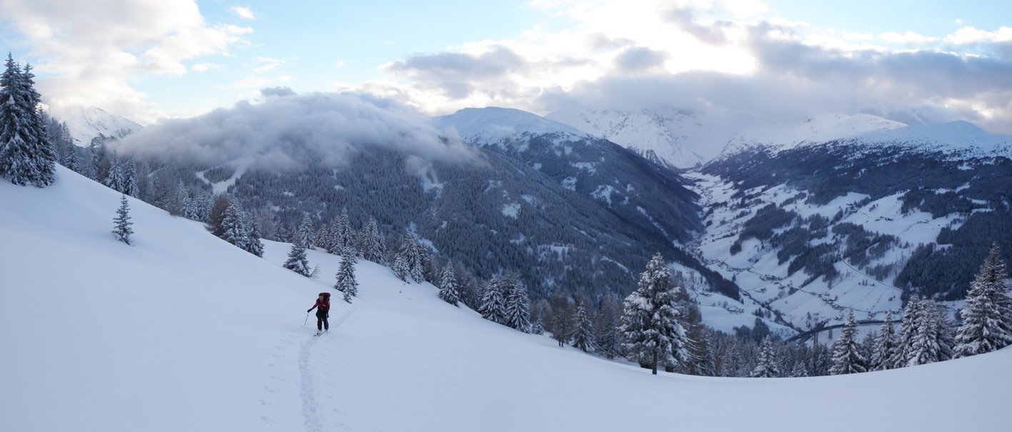 Die Skitour auf den Padauner Kogel bietet sich wegen der niedrigen Gipfelhöhe und der flachen Hänge als gutes Ausweichziel an. Oft ist man bis zum Gipfelgrat auch alleine unterwegs, dort trifft man meist auf eine breite Schneeschuhspur der von Osten heraufkommenden Plattfüßler. Immer den leisen Sound der Brennerautobahn im Ohr gelangt man einfach auf den Gipfel, bei sicheren Schneeverhältnissen lockt die direkte Abfahrt durch die steilere Westflanke.