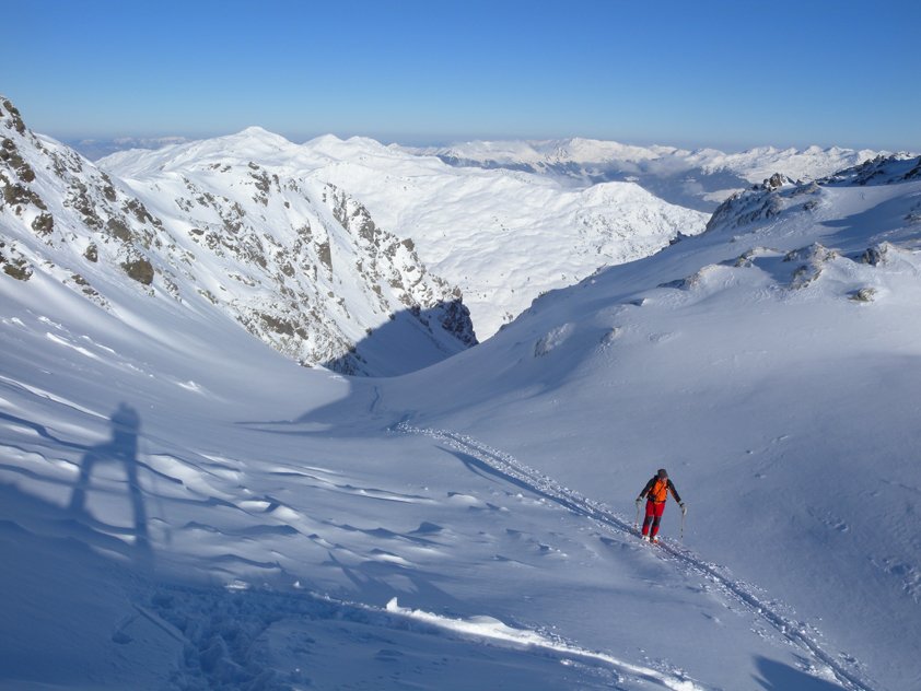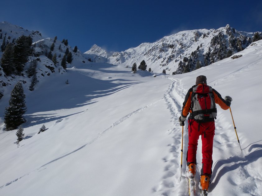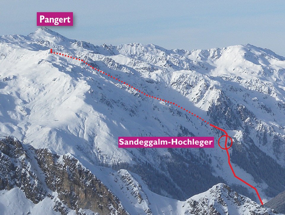 Der Aufstieg zum Pangert vorbei an der Sandeggalm und dann durch die Nordostrinne ist eine der Toptouren im Bereich der Zillertaler Höhenstraße. Wenn die Schneeverhältnisse stimmen ein super Skitourenabenteuer, welches wegen der schattigen Nordostlage auch lange Pulverschnee verspricht. Wer Erfahrung mit steileren Hängen und Karen hat, wird sich wohl fühlen. Vom Gipfel toller Ausblick in die Zillertaler Alpen.