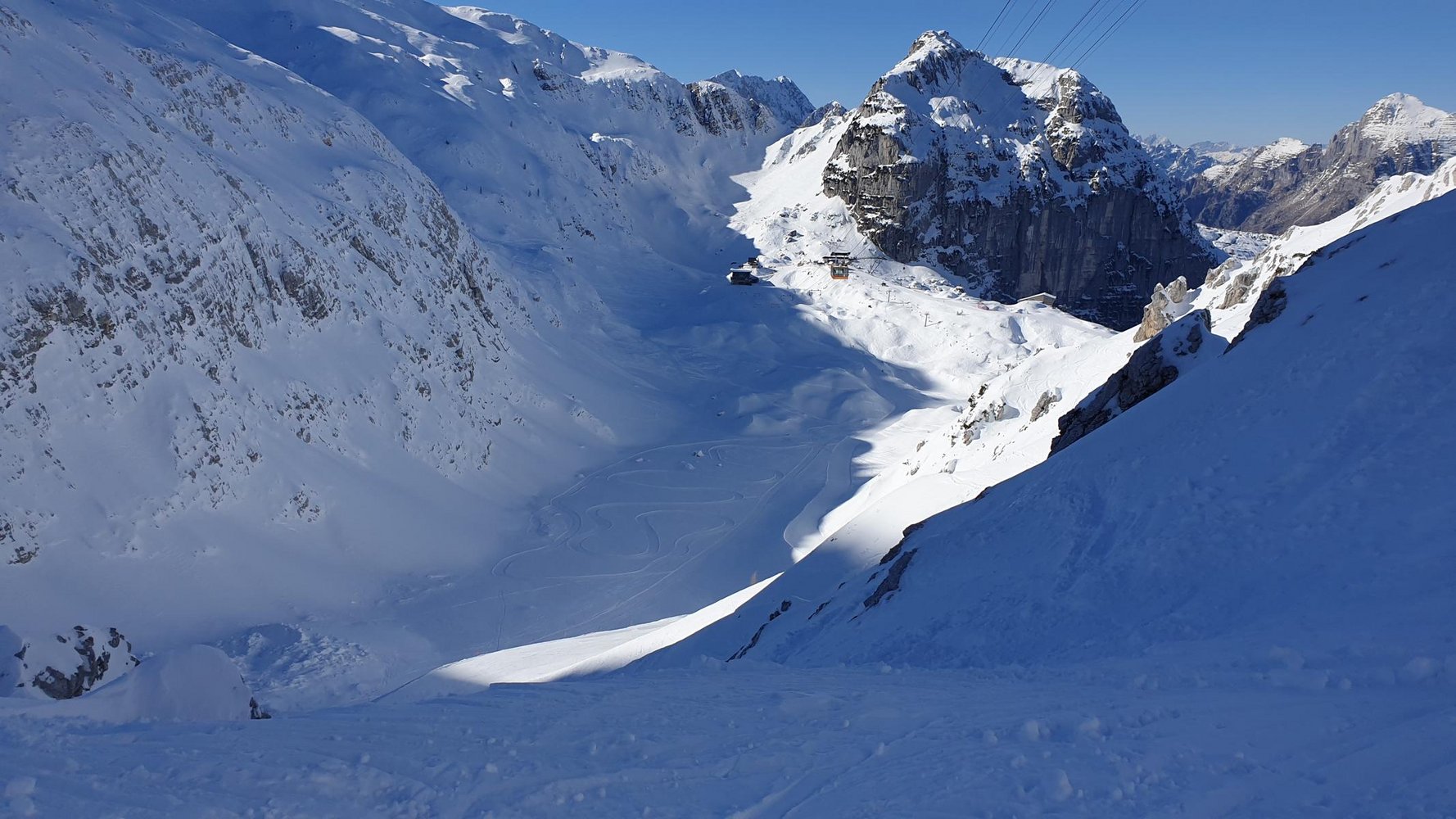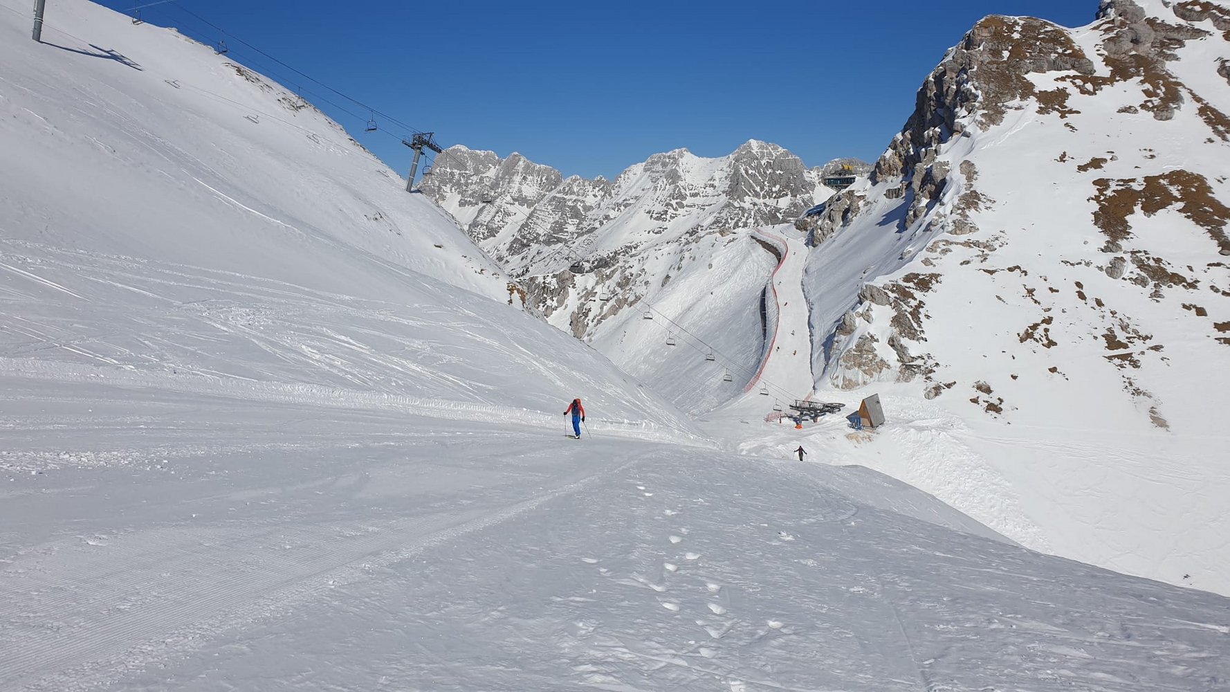 Abfahrt: Bis zum Prevala Sattel über die Aufstiegsspur, weiter über die Skipisten ins Tal. Vor dem Rifugio Gilberti kann man für 100 Hm Gegenanstieg (2025 gratis) den Sessellift benutzen. Weiter über die Skipisten zum Parkplatz auf der Sella Nevea.