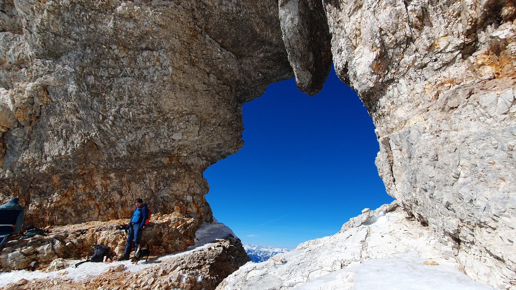 Prestreljeniško okno - Prestreljenik-Fenster vom Sella Nevea Sattel