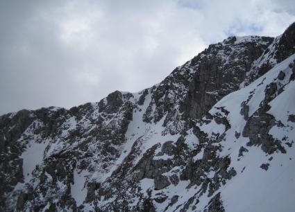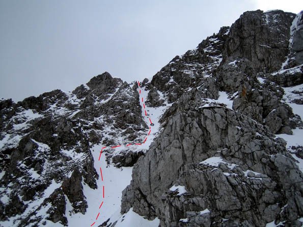 Bei zu geringer Tageserwärmung ist auch in der Privatries Vorsicht geboten, da die Rinne dann meist vereist ist. Am besten, man geht diese zuerst im Aufstieg um die Verhältnisse abzuchecken!