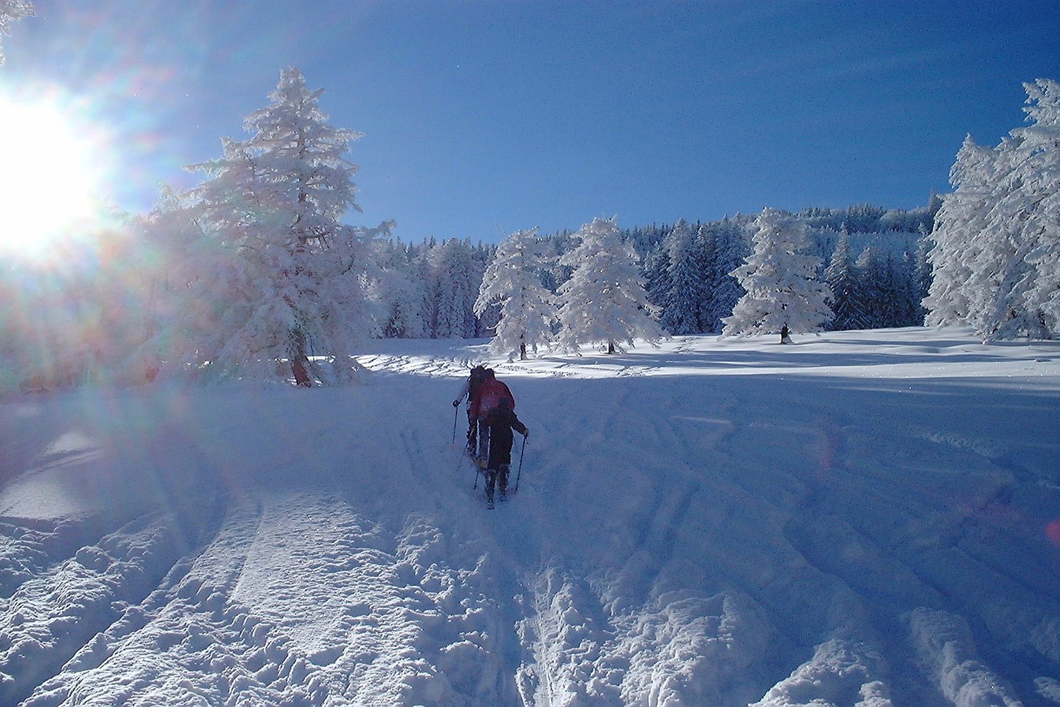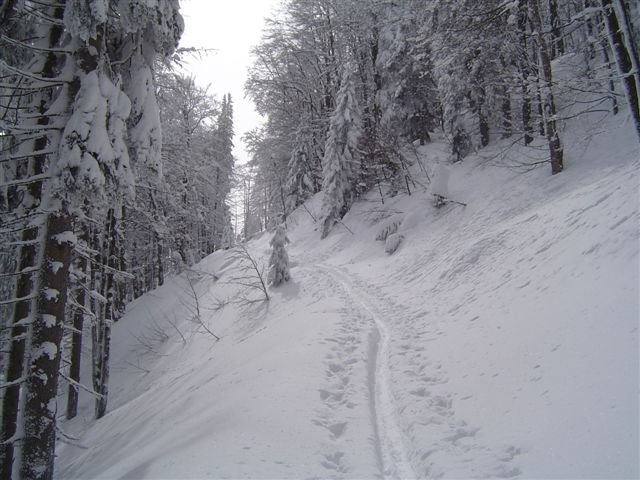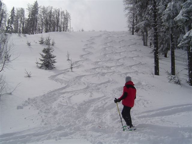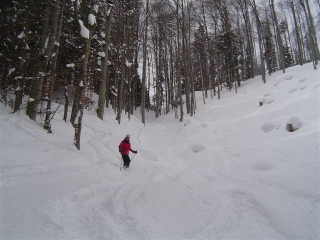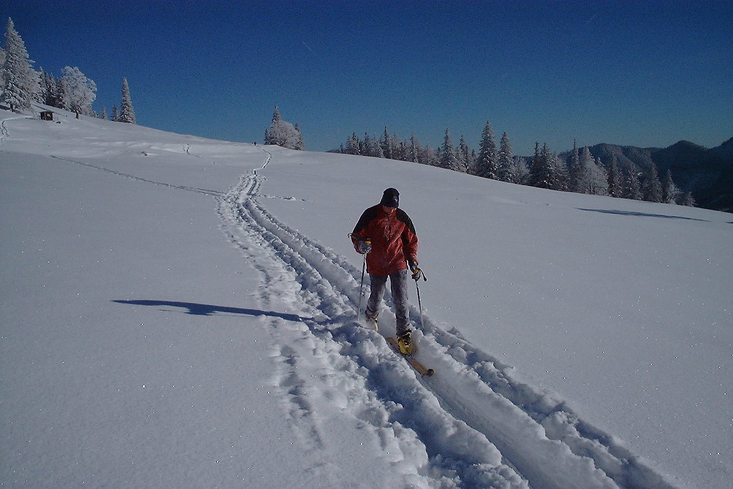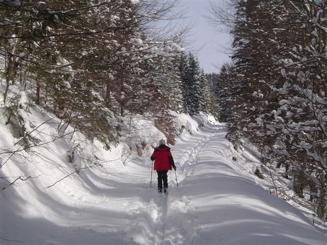 Abfahrt wie Aufstieg oder eine der Varianten, mein Tipp fuer Skifahrer, die wieder nach Traisenbeck muessen: Geniesst die baumlosen Hänge bei der Kleinzeller Hinteralm und fahrt dann die Forststrassen weiter, die direkte Abfahrt in den Graben der dritten Aufstiegsvariante ist ziemlich stark verwachsen.