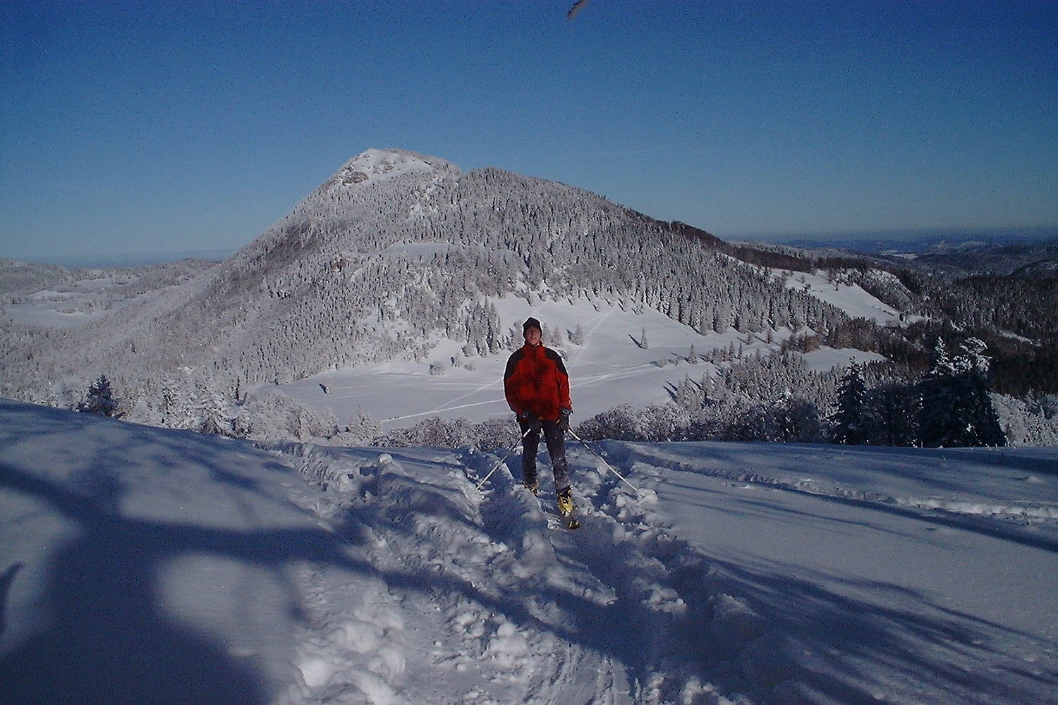 Entlang des Sommerweges zuerst leicht bergab, dann fast eben an der Westflanke des Hochstaff vorbei auf die Kleinzeller Hinteralm und weiter ueber die Almwiesen und den Sommerweg (immer gespurt), zuletzt ueber einen steileren Hang auf die Gipfelhochflaeche. Vorbei am Bundesheerstuetzpunkt und gleich zum Reisalpen Schutzhaus (neuer, gemuetlicher Winterraum). Abfahrt wie Aufstieg.