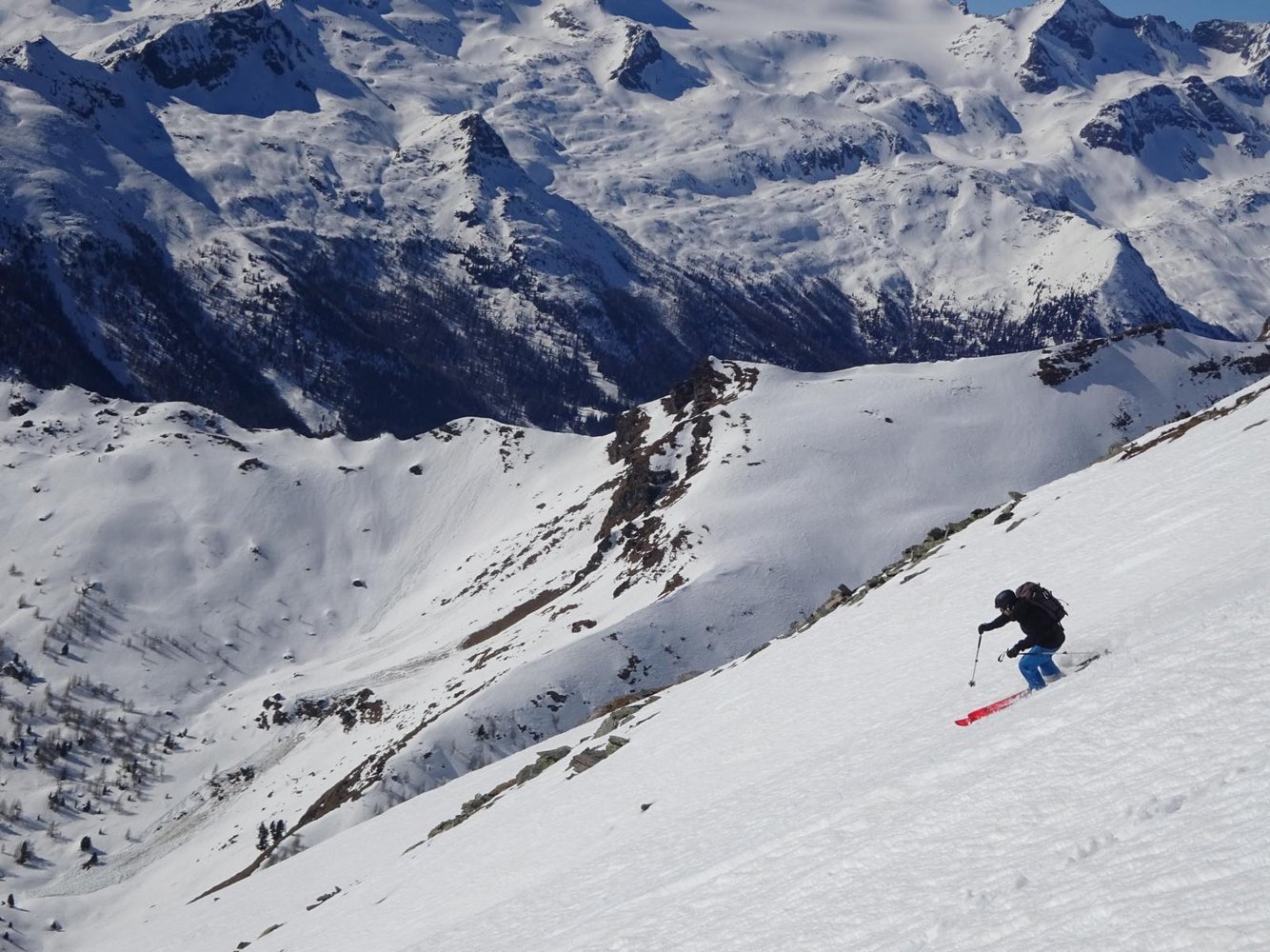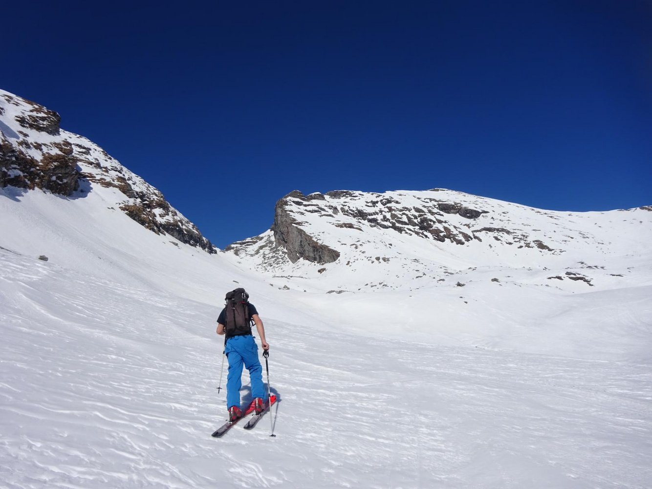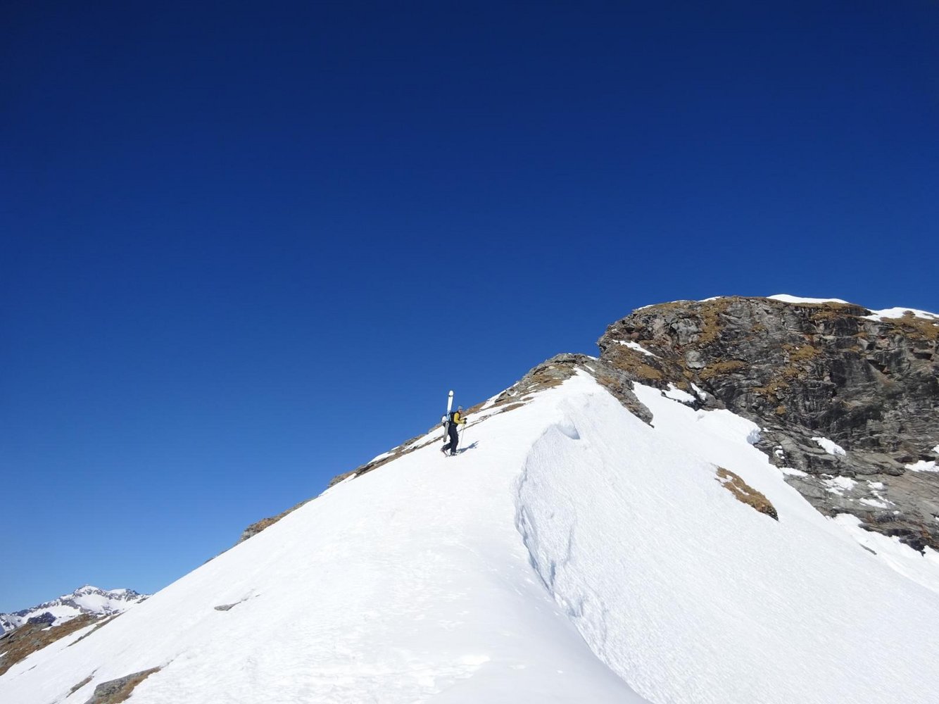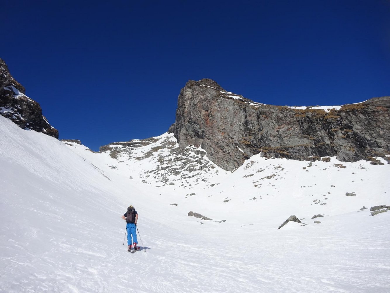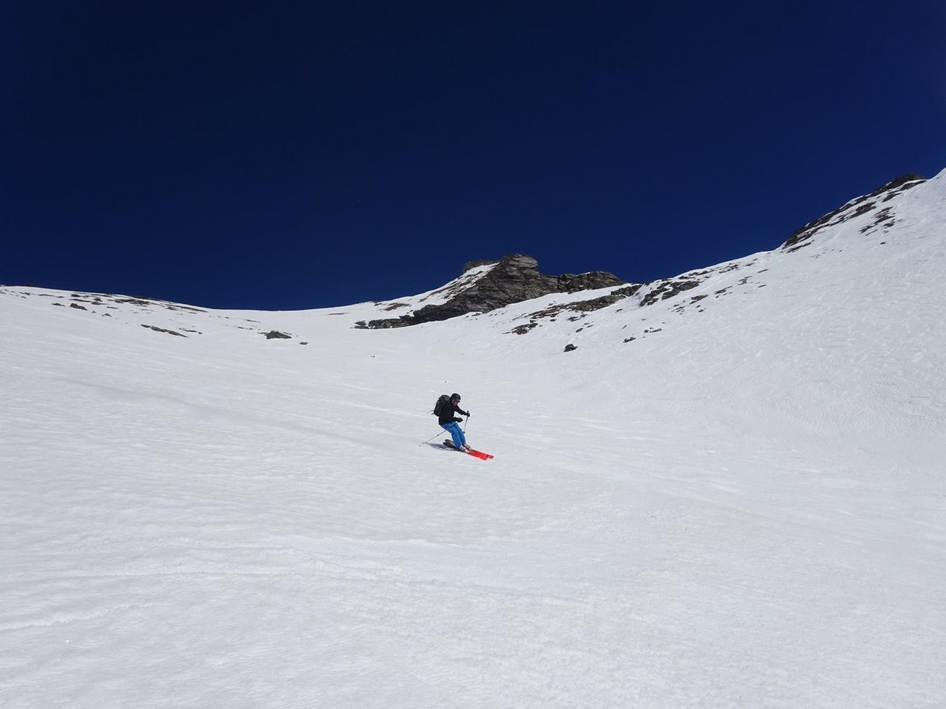 Vom Vorgipfel aus kann man auch über eine kurze Rinne (nordwestliche Richtung) etwas unterhalb des höchsten Punkts in die Perschitz fahren.