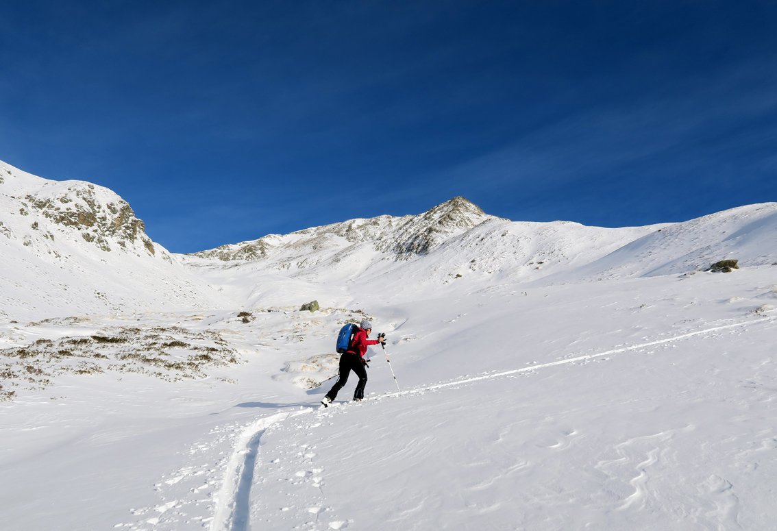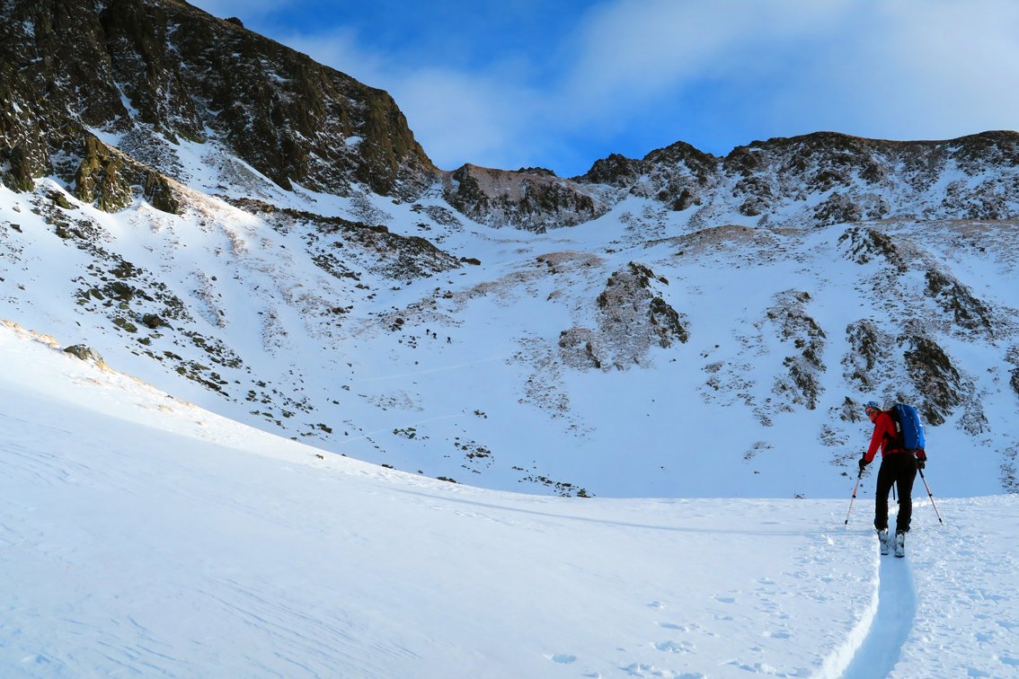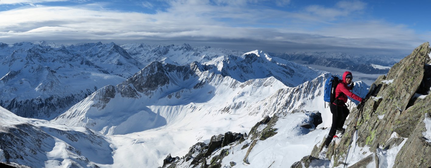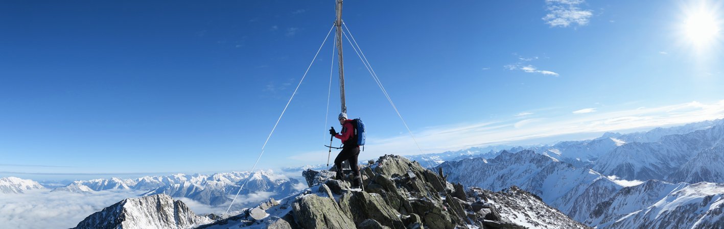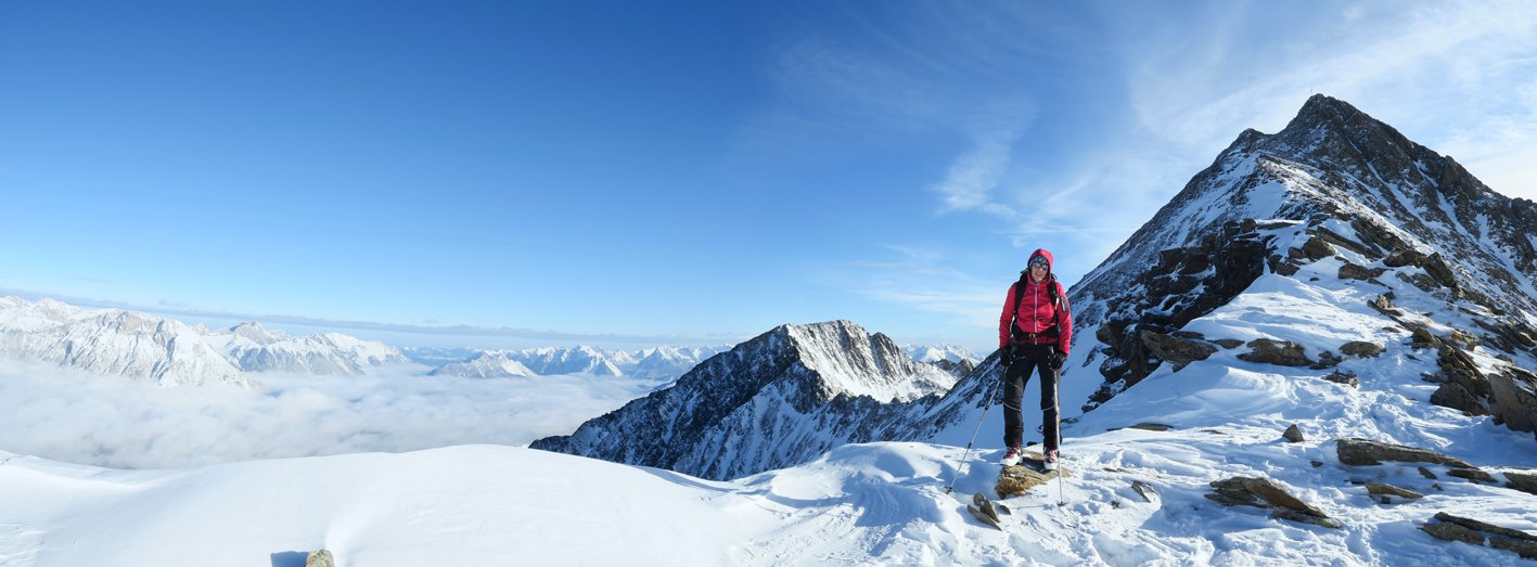 Der Rietzer Grieskogel ist einer der Klassiker im Kühtai, selten ist man alleine unterwegs. Bis auf den kurzen Steilhang nach den Narrenböden und dem rechts und links steil abfallenden, aber breiten Gipfelgrat ist die Tour leicht. Schöne Abfahrtshänge und ein schöner Gipfelgrat sorgen für Abwechslung. Toller Blick vom Gipfel hinunter nach Telfs und die Mieminger-Kette. Wer den Gifelgrat nicht machen will (bei Schneemangel oder wegen Überwechtung) lässt es in der Scharte gut sein.