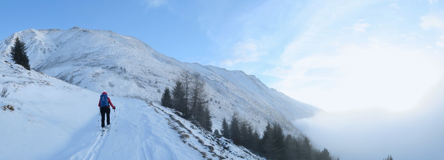 Achtung: Bei wenig Schnee beginnt man am besten am oberen Ende der Lawinengalerie. Man geht zuerst auf der Galerie ostwärts bis zu einer Forststaße, dieser folgt man dann ins Klammbachtal.