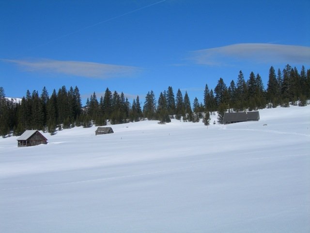 Vom Parkplatz in Weichselboden über die Forststraße zur Edelbodenalm (die letzten Kehren können - je nach Schneelage - über den Sommerweg abgekürzt werden).