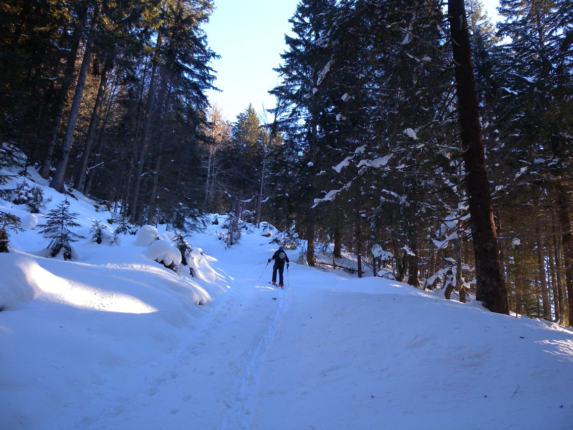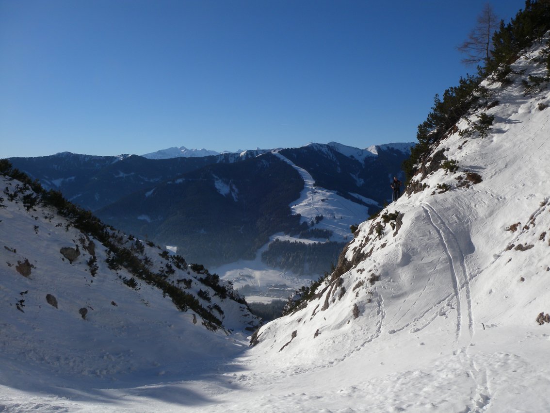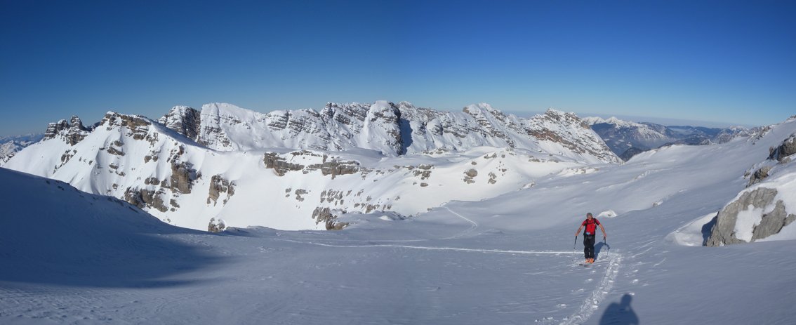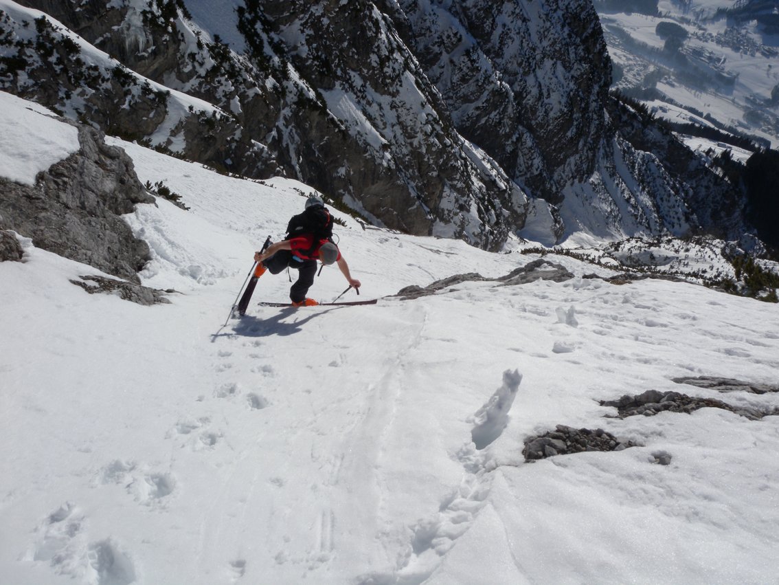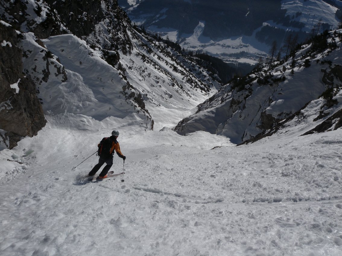 Grundsätzlich eine anspruchsvolle, steile Tour, welche man nur bei sicheren Schneeverhältnissen und bei Firn macht. Der Hang ist bald in der Sonne, früher Aufbruch ist ratsam. Teils sind kurze, heikle Steilstufen zu bewältigen - gute Skitechnik nötig.