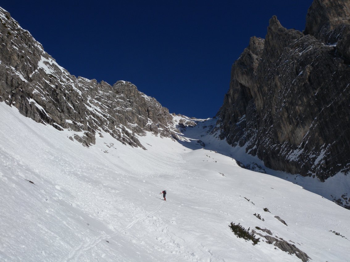 Schönes, steiles Kar, durch das man zum Jauzkopf aufsteigt. Ab der Scharte kann man auch weiter zum Kuchelnieder gehen und kann von dort auf einem Steig auf das Birnhorn, 2634 m klettern. Der Karanstieg ist südseitig und man geht meistens in der Sonne. Gesamt eine tolle Steilkar-Skitour, bei der ein flacher Querweg das Gesamterlebnis nicht stört. Die Tour ist eher etwas für erfahrene Skitourengeher, welche die Gegebenheiten in steilen Flanken gut beurteilen können.