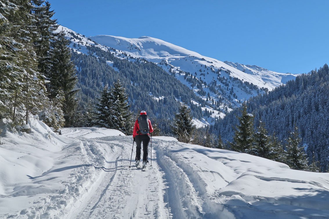 Wenn man bei der Oberen Nurpsenalm keine Aufstiegsspur zum Pfundsjoch sieht, ist man mit der Querung unterhalb des Kleinen Gilferts schneller beim Pfundsjoch. Der breite Gipfelgrat ab dem Pfundsjoch ist oft abgeblasen - deshalb fährt man besser kurz in Richtung Hochfügen ab und steigt dann die ca. 150 Hm wieder zum Pfundsjoch auf. Da die Tour sehr lang ist, tut man gut daran, auf dem flachen Forstweg etwas flotter zu gehen.