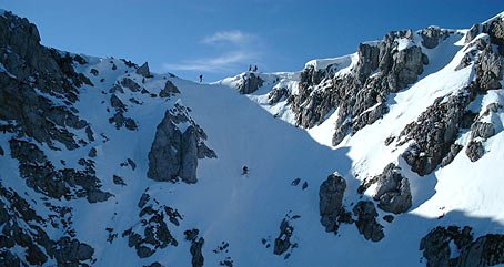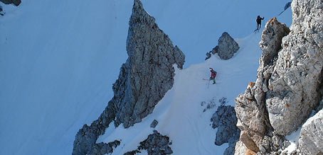 Bei zu geringer Tageserwärmung ist auch in der Breiten Ries Vorsicht geboten, da die Rinne dann meist vereist ist. Am besten, man geht diese zuerst im Aufstieg um die Verhältnisse abzuchecken!