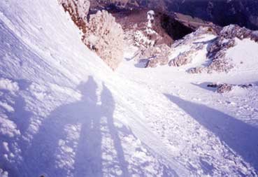 Bei zu geringer Tageserwärmung ist auch in der Breiten Ries Vorsicht geboten, da die Rinne dann meist vereist ist. Am besten, man geht diese zuerst im Aufstieg um die Verhältnisse abzuchecken!