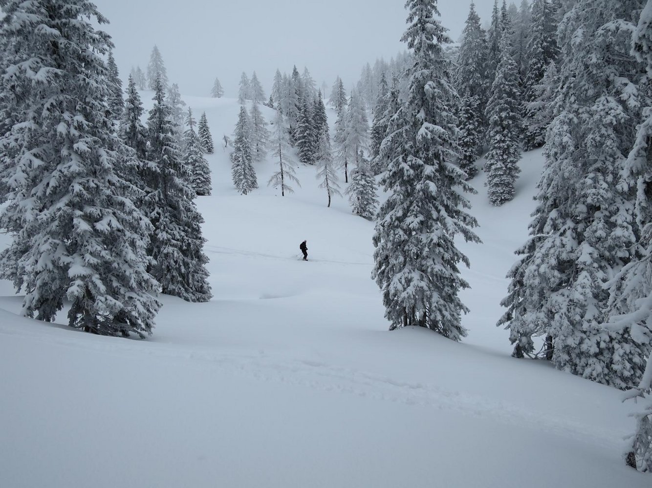 Abfahrt: Wie Aufstiegsroute oder vom Gipfel kurz nach Norden und gleich wieder links und südlich durch ein schönes Kar direkt zum Frauenkarlift abfahren.