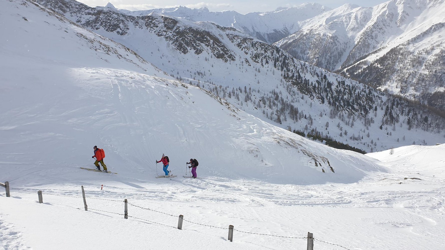 WICHTIG: Es gibt hier eine Skitourenlenkung, das heißt im untersten Teil der Tour NUR über die gekennzeichneten Schläge abfahren!