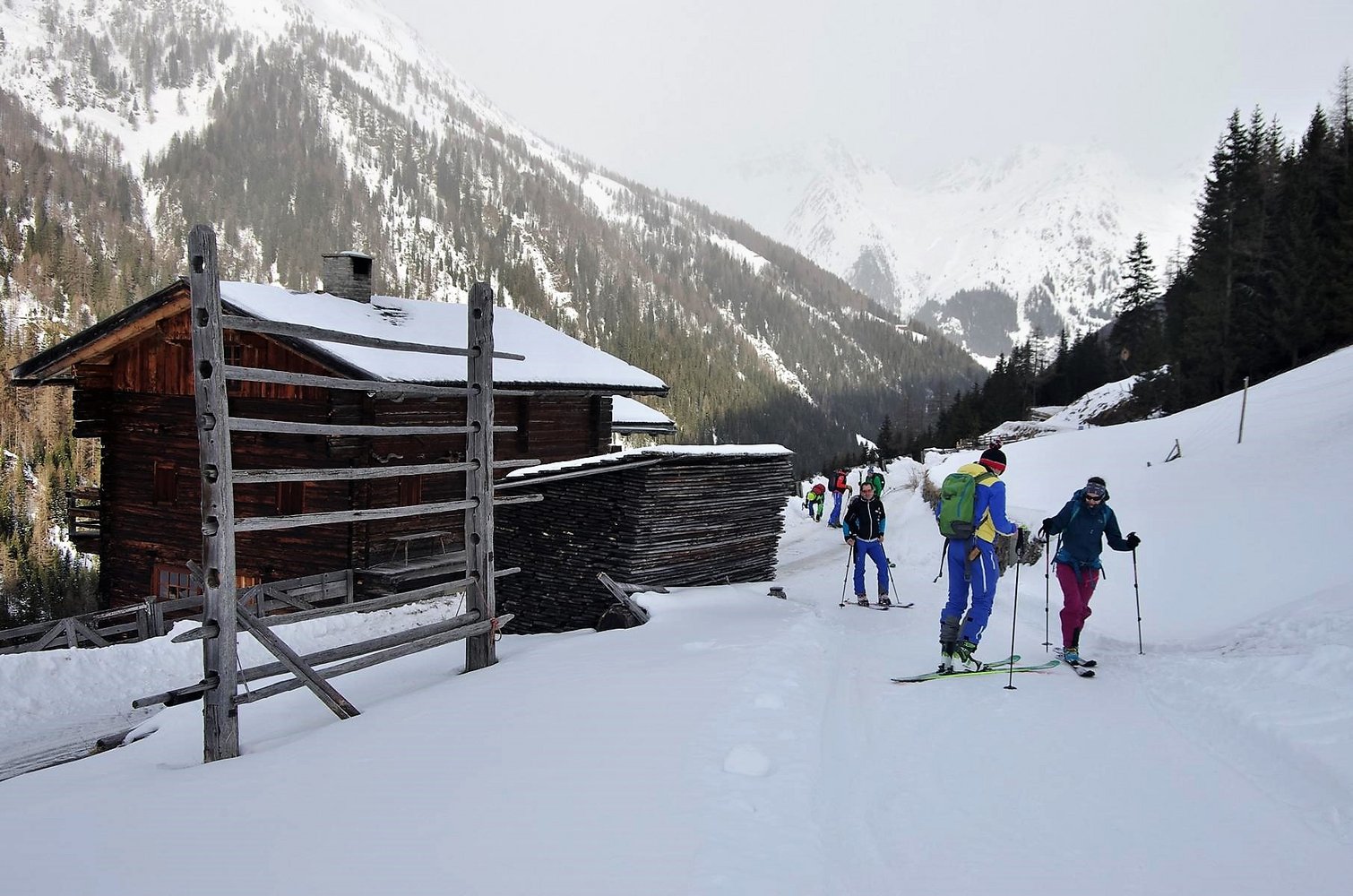 Das Rote Kinkele - in manchen Karten auch als Rotes Ginggle bezeichnet - steht meist ganz, ganz oben auf dem Villgrater Skitouren-Wunschzettel und hat für jeden etwas zu bieten: Alte Holzhöfe, einen langen Forstweg, eine schöne Alm mit Kapelle, Wiesen, Mulden und ganz oben einen aussichtsreichen Gipfelgrat mit Tiefblick in einsame Täler. Diese Skitour kann man auch bei Osttirols höchst gelegen Bauernhöfen, dem Fürathof auf 1.700 m starten (empfohlen).