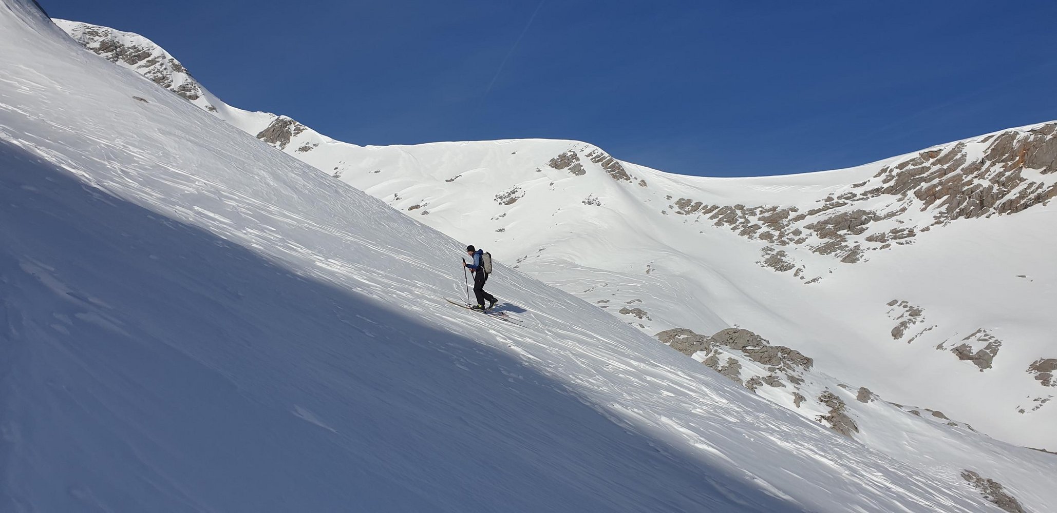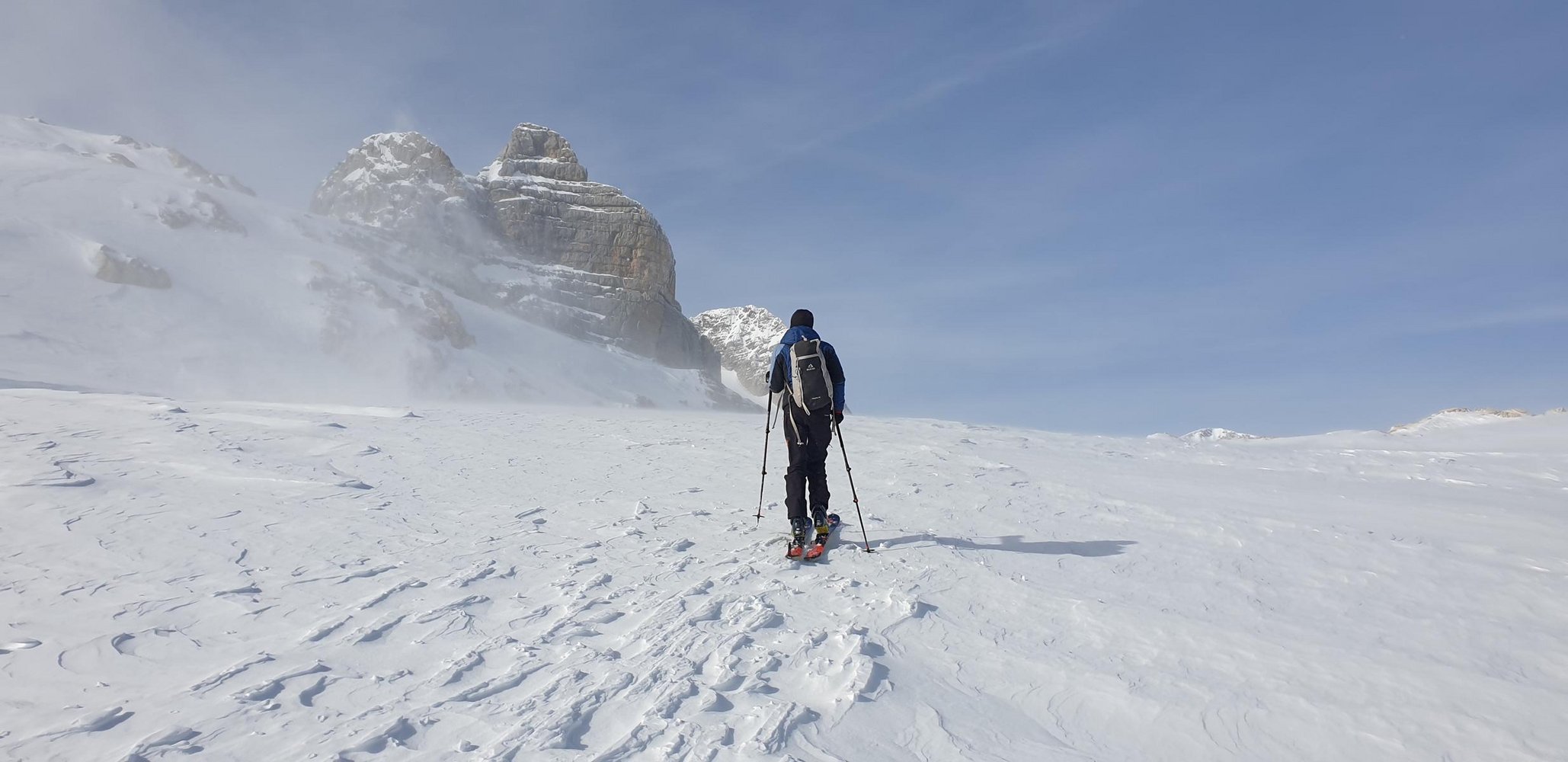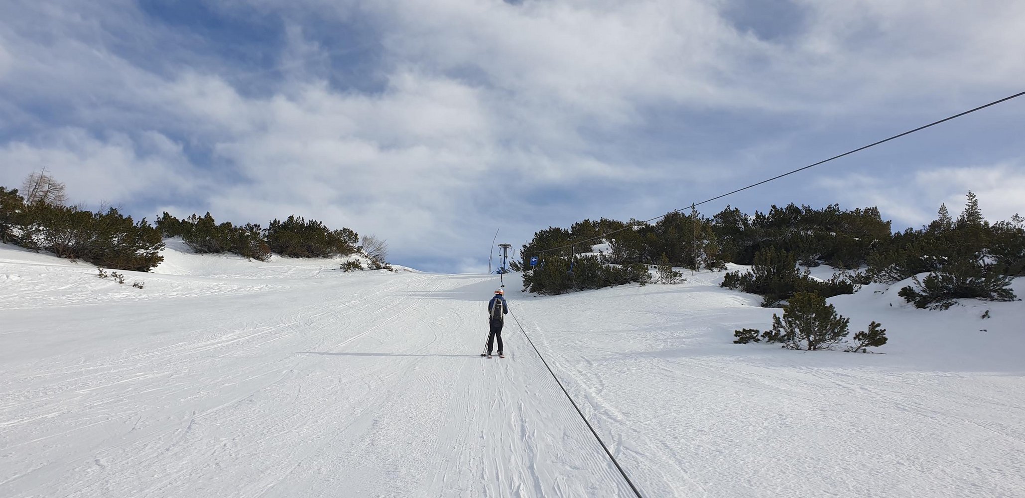 Die Rumpler-Runde ist lang und die Abfahrt ist aufgrund der kurzen Gegenanstiege (in Summe ca. 200 Hm!) auch kraftraubend. Nichts für Skitouren-Anfänger und konditionsschwache Geher.