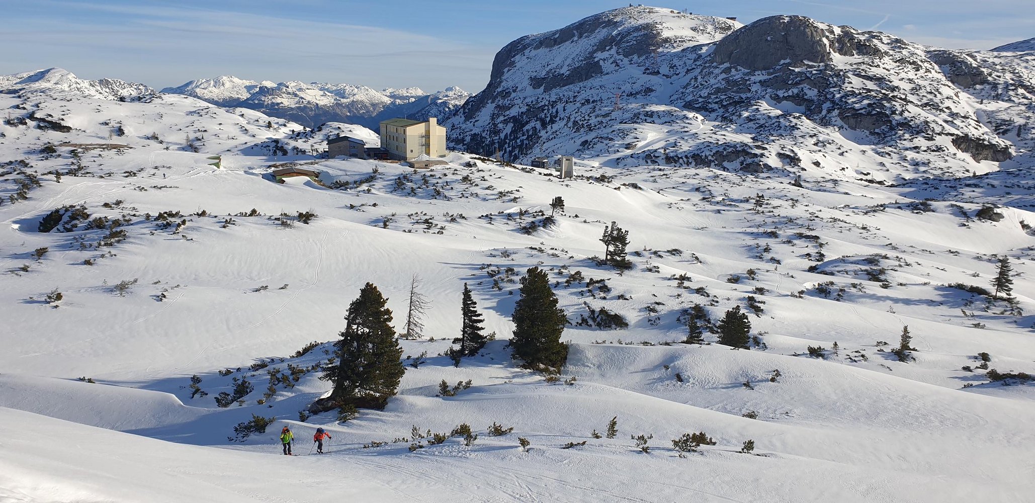 Markierung: Der gesamte Aufstieg bis zur Dachsteinwarte ist mit Stangen markiert. Ebenso die Abfahrt, die in der Regel auch mit einem Ratrak gespurt wird. Lediglich im Bereich des Schöberls oberhalb der Simonyhütte muss man genau aufpassen, damit man die richtige Abfahrt erwischt.