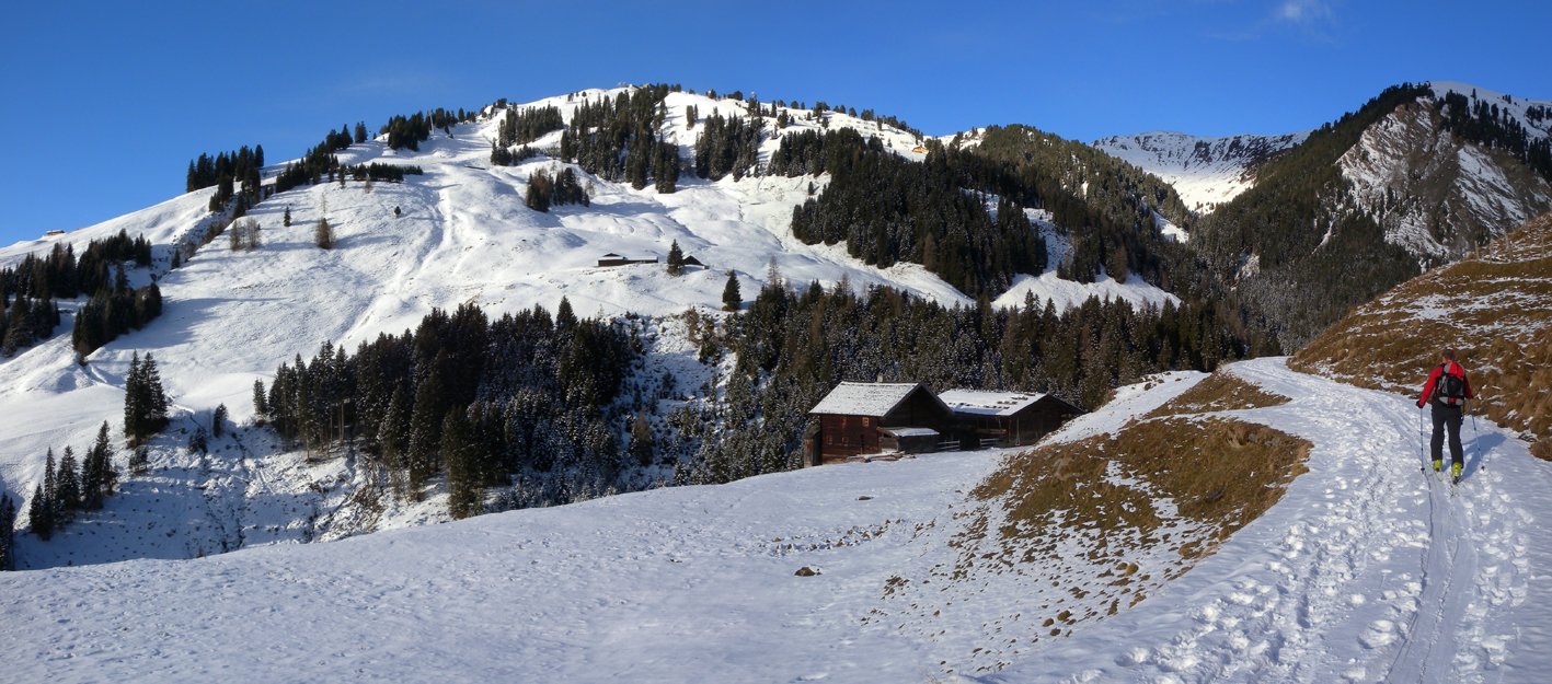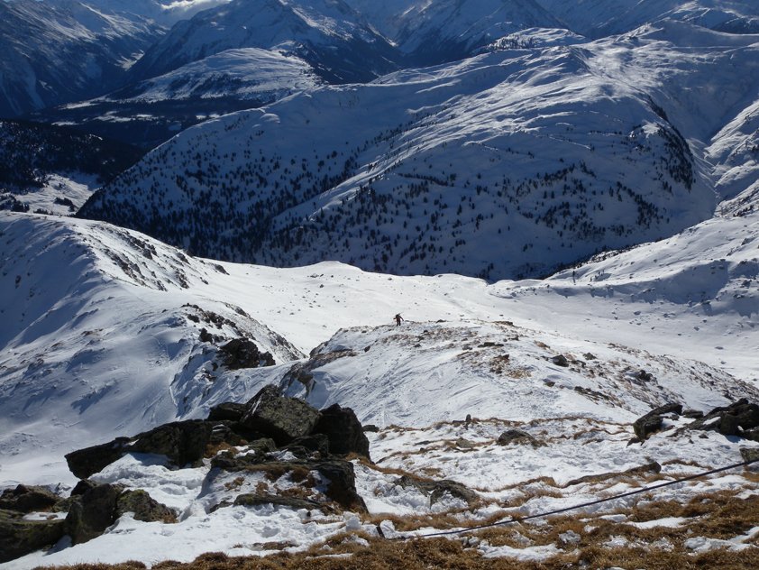 Abfahrt wie Aufstieg. Alternativ kann man nach dem Gipfelhang nördlich durch den sog. Schwebenboden abfahren.