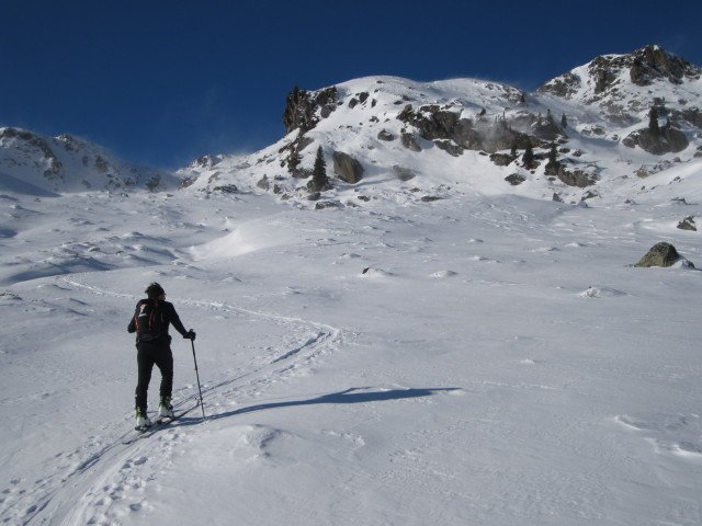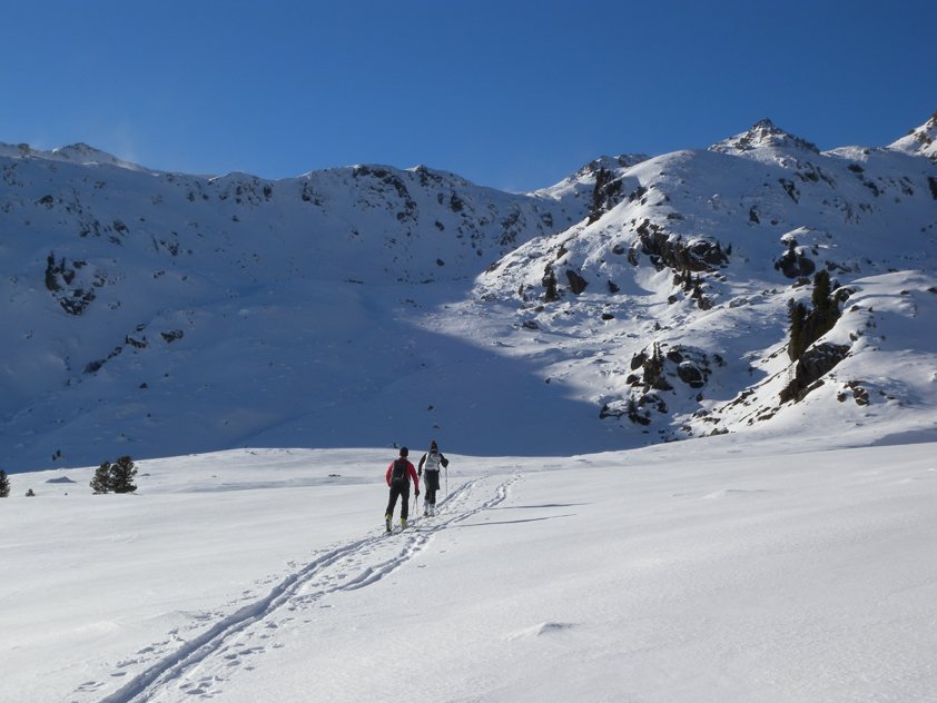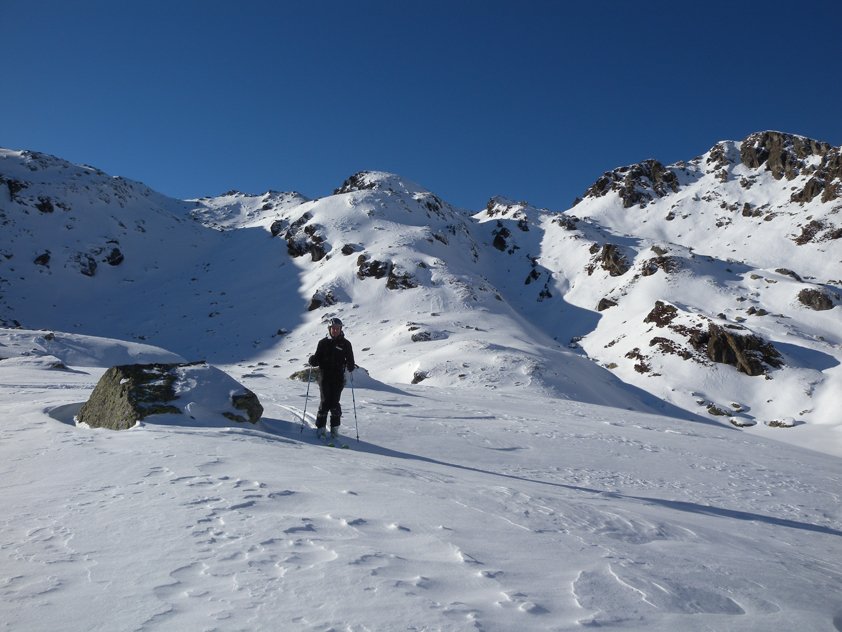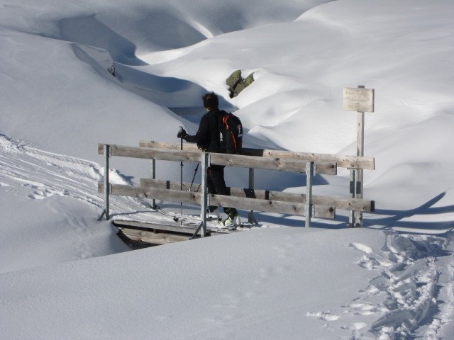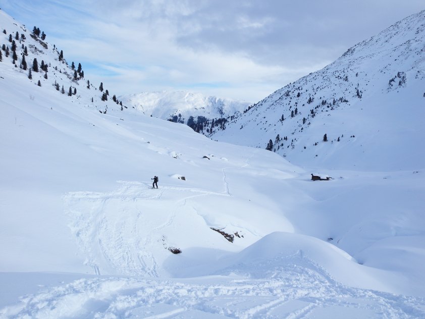 Bessere Variante für die Abfahrt von der Bamberger Hütte zum Ghf. Wegscheid: Von der Hütte westlich kurz zum Unteren Wildalmsee aufsteigen (Aufstiegsspur zum Schafsiedel). Vom Unteren Wildalmsee nördlich in das Manzenkar abfahren, unten dann weiter auf dem Forstweg (schönes Augenspektakel - gigantische Eiszapfen direkt am Forstweg).
