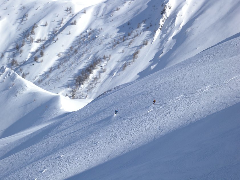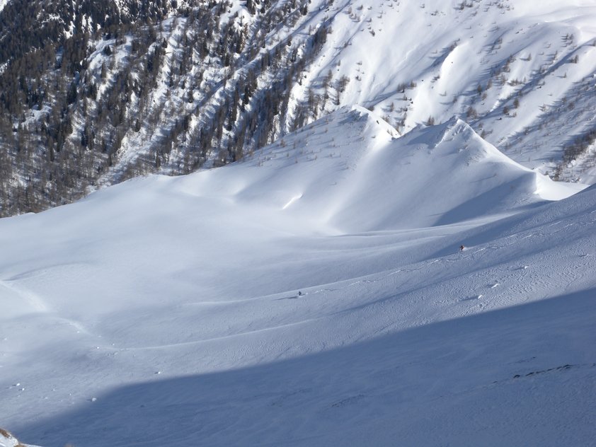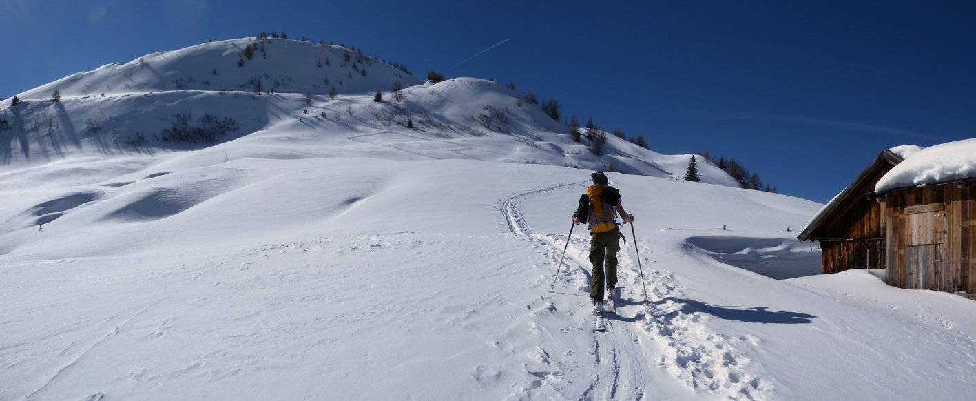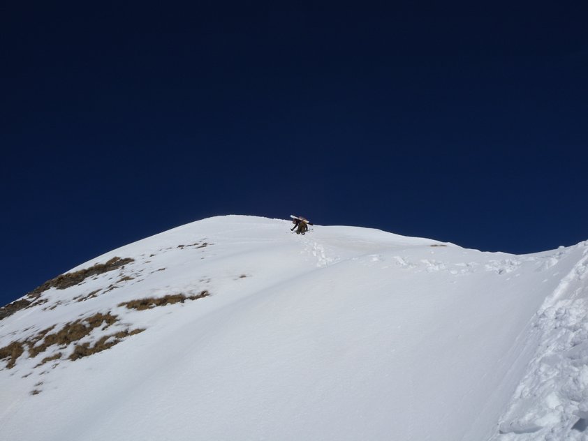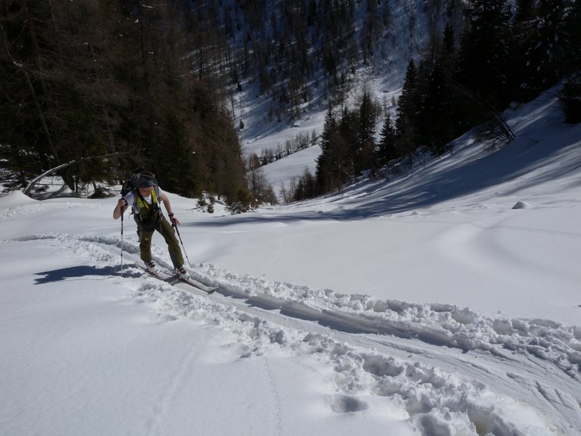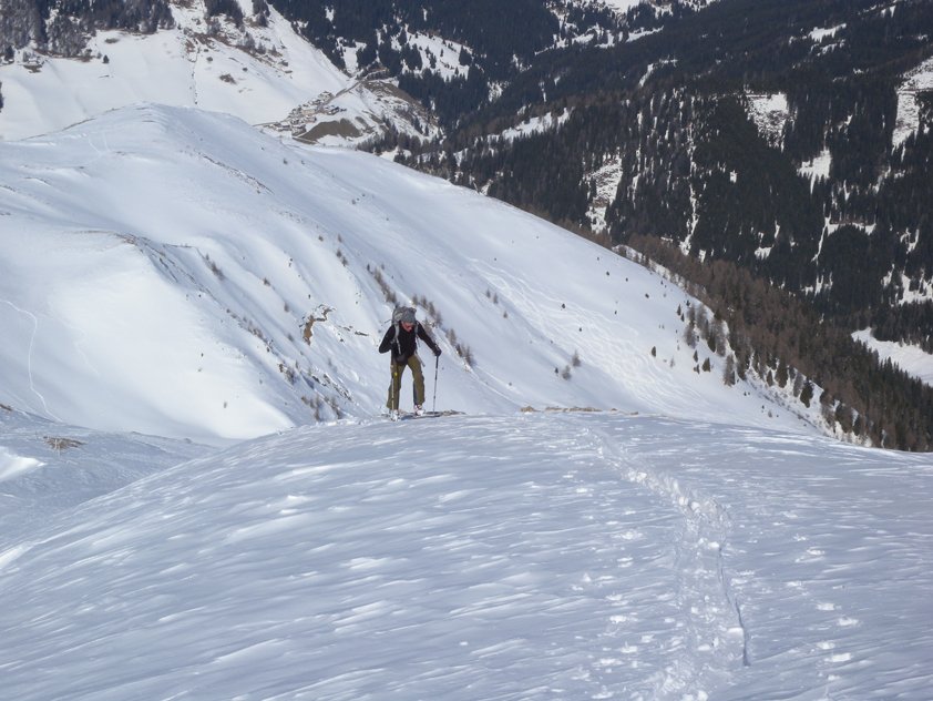 Die Tour nur bei sicheren Schneeverhältnissen durchführen! Ab den zwei Felszacken wird es steiler und die Abfahrt über den schönen, steilen Nordhang braucht sichere Schneeverhältnisse. Bei unsicheren Verhältnissen besser wieder auf den Nordgrat retour.
