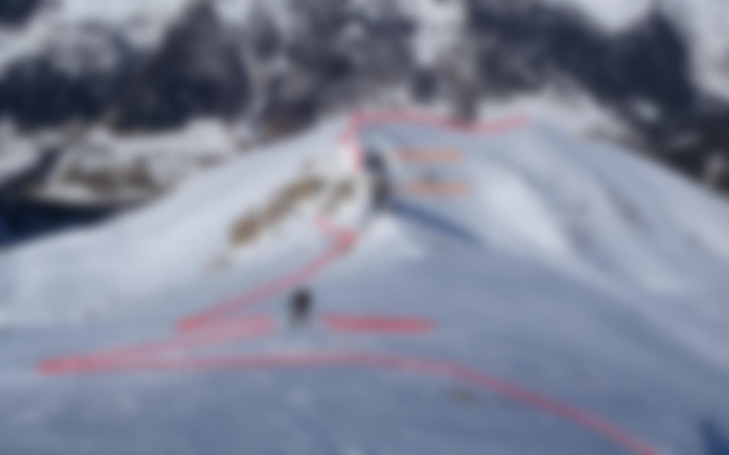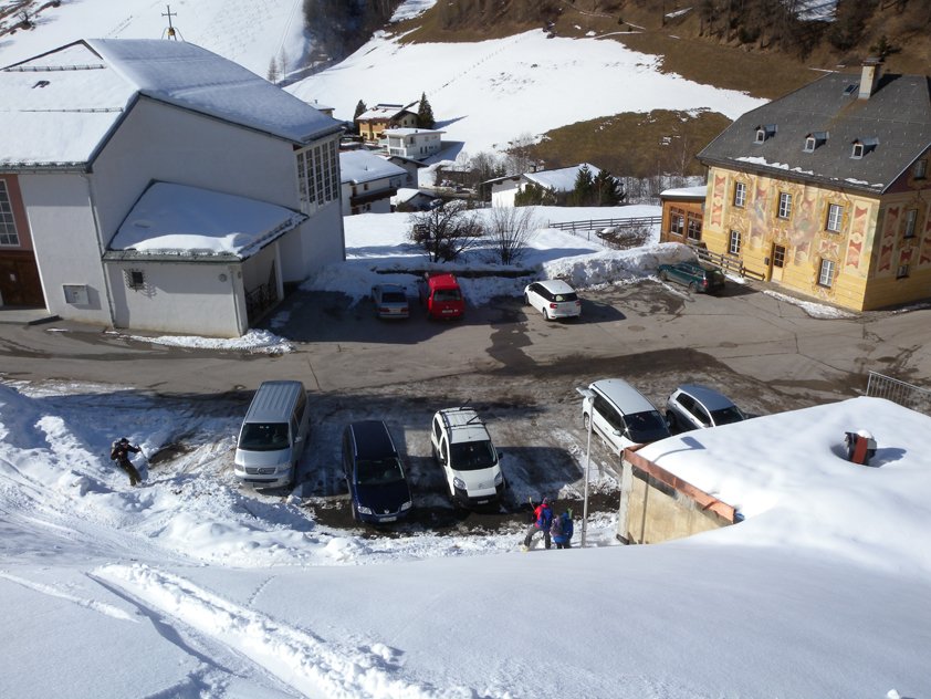 Abfahrt: Man fährt vom Kreuz etwas den flachen Kamm auf der Aufstiegsspur zurück, schwenkt dann aber nach Norden und fährt den Hang östlich von den zwei Felstürmen hinunter. Im unteren, flachen Kar hält man sich nördlich und fährt durch steilen Wald zur Stippleralm ab, dort links bis man auf die Aufstiegsspur trifft.