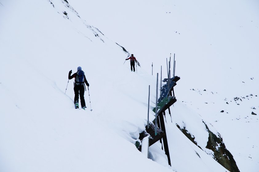 Vorsicht im steilen Hang vor der Finstertaler Scharte, diese sollte man nur bei sicheren Verhältnissen begehen!