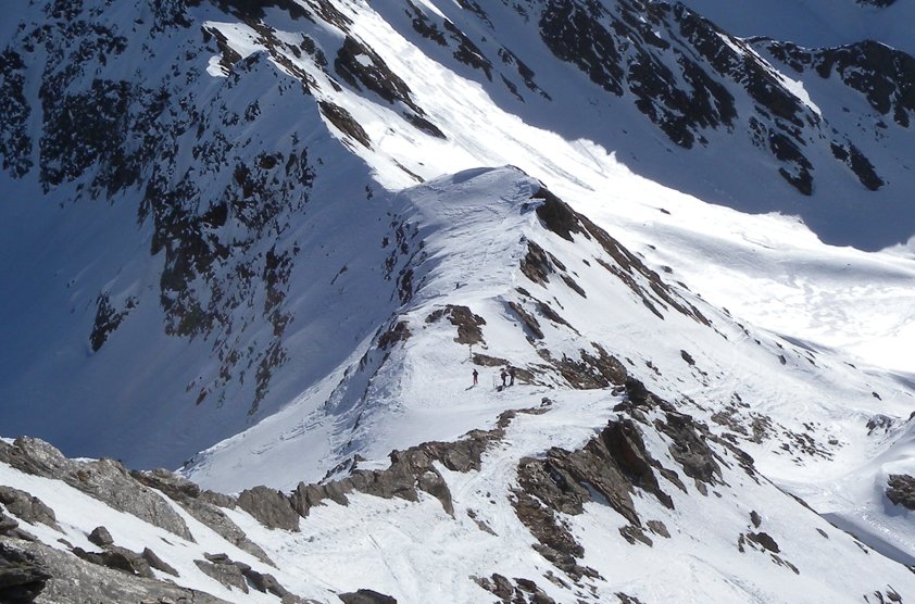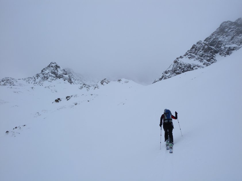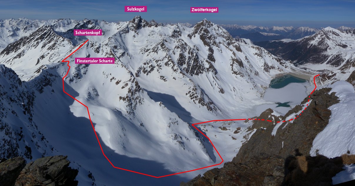 Abfahrt: Wie Aufstieg. Bei sicheren Verhältnissen kann man auch östlich, direkt vom Gipfel in das Becken unterhalb der Finstertaler Scharte abfahren (ist aber steil!)