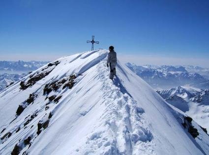 Für den Gipfelgrat können je nach Verhältnissen Steigeisen erforderlich sein. Für unsichere Geher evtl. auch Seilsicherung.