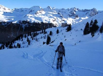 Abfahrt entlang der Aufstiegsroute zurück zur Hütte;