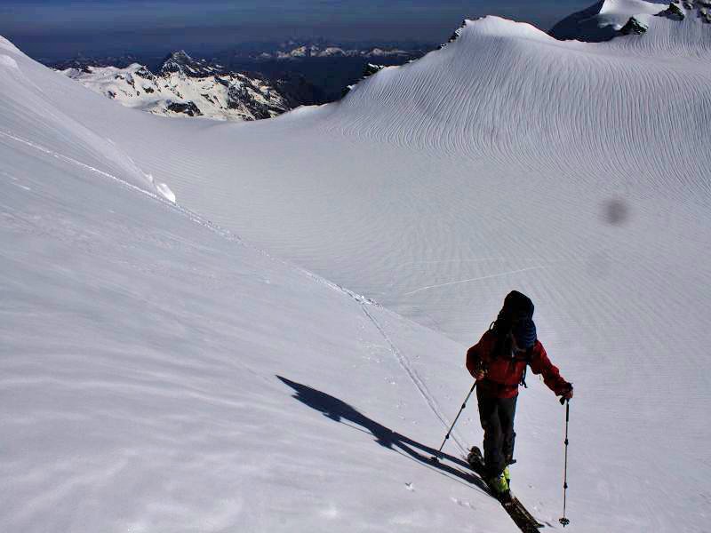 Die Abfahrt über den Hufeisenbruch ist mitunter spaltengefährdet!