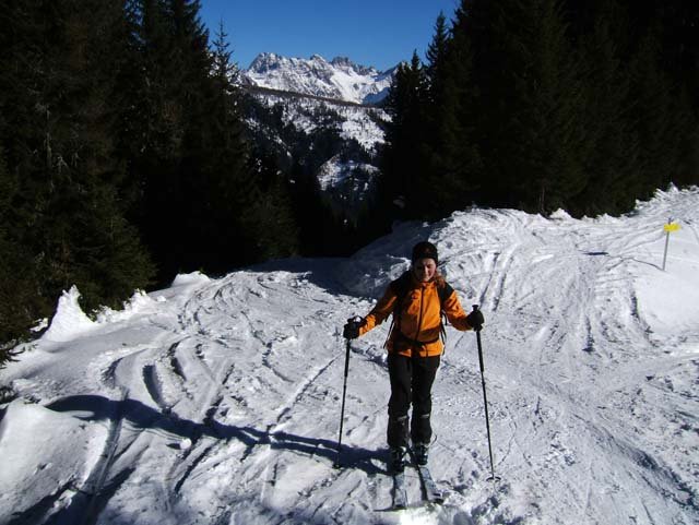 Bei sicheren Verhältnissen kann der Aufstieg zur Schulterhöhe fortgesetzt werden (anspruchsvoll).
