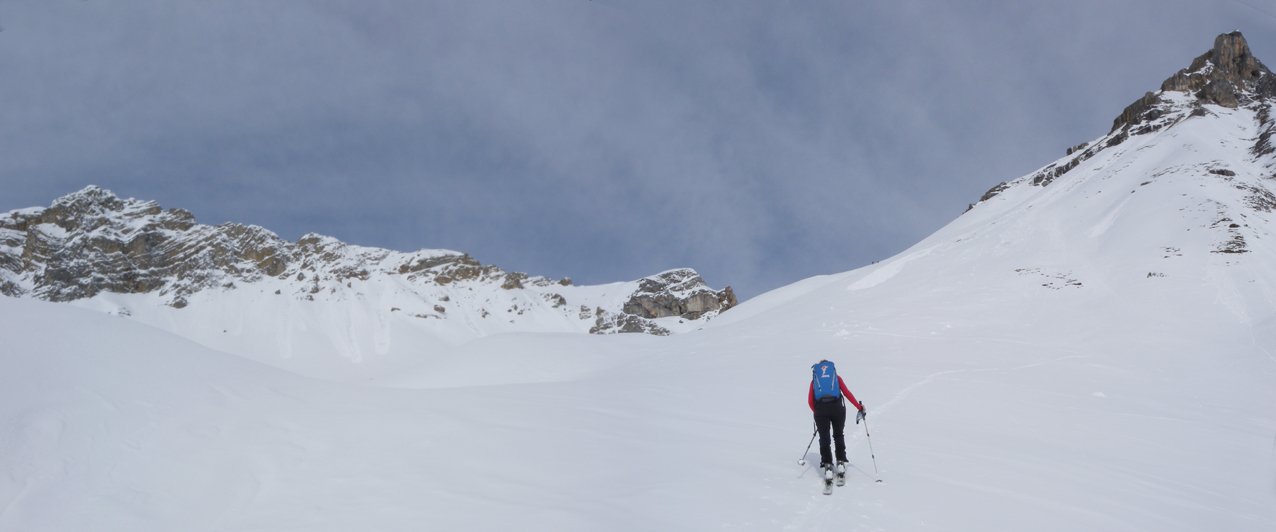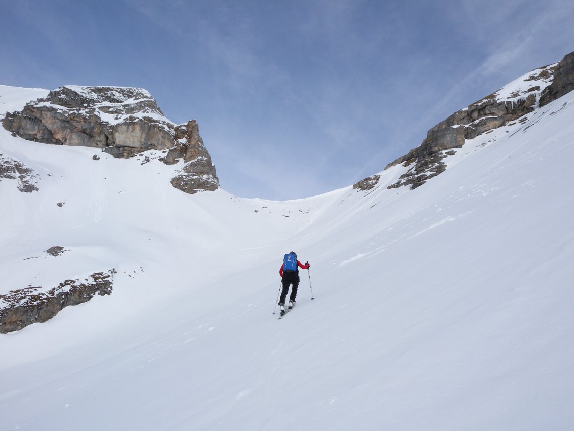 Wegen der südlichen Ausrichtung früh Firn. Sichere Schneeverhältnisse sind nötig.