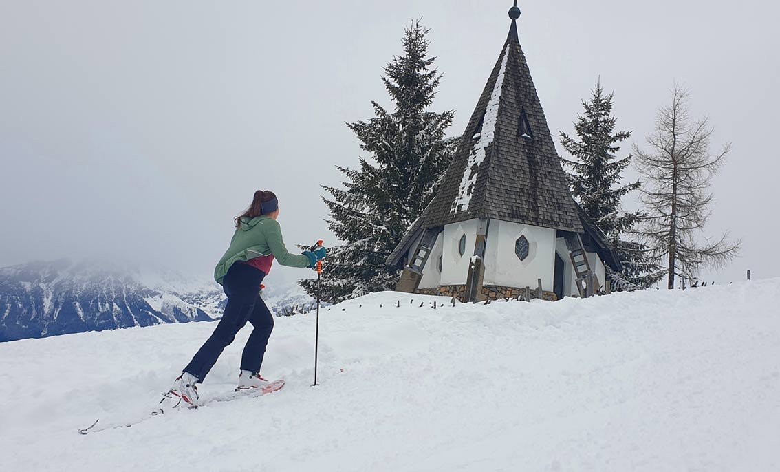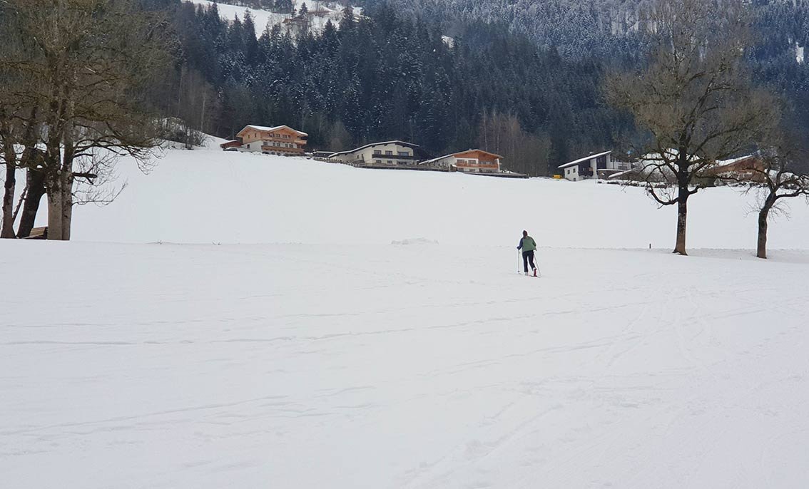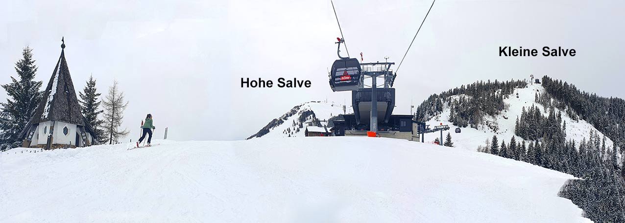 Das Skigebiet Skiwelt bei Itter ist für Pistenskitourengeher eher uninteressant, die Pisten sind flach oder steil. Es gibt aber bei genügend Schneelage eine schöne und bei Einheimische beliebte Aufstiegsroute abseits der Skifahrermassen. Man steigt genüsslich im Wald und über Felder direkt unterhalb der Gondelbahn auf und kommt bei der Kraftalm (Gasthaus und kleine Kapelle) wieder zum Skigebiet. Wer will, kann noch weiter auf die Kleine (plus 210 Hm) oder Hohe Salve (475 Hm) gehen. Gute Route auch für Skitoureneinsteiger, die Wiesenhänge werden immer wieder von der Fahrstraße gekreuzt, im Wald folgt man meist breiten Pfaden bzw. Forstwegen.