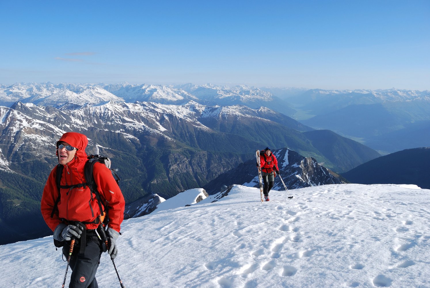 Hochalpine und objektiv nicht ungefährliche Skitour (Querung unter den mächtigen Gletscherbrüchen nach der Berglhütte). Vom Tal aus ein gewaltiges Unternehmen (2300 Hm; von der urigen und sehr gut geführten Berglhütte sind es aber auch noch 1700 Hm, die Zielhöhe knapp an der 4000er Marke ist zu berücksichtigen). Das Begehen und Befahren von Flanken bis 45° sollte beherrscht werden (bei schlechten Verhältnissen Steigeisen nötig!). Ab dem Ende der Eisrinne ist die Orientierung bei Schlechtwetter sehr problematisch (GPS-Track kann bei bergsteigen.at angefordert werden).
