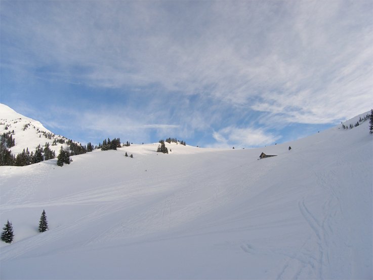Nur im Gipfelbereich werden die Hänge etwas steiler.