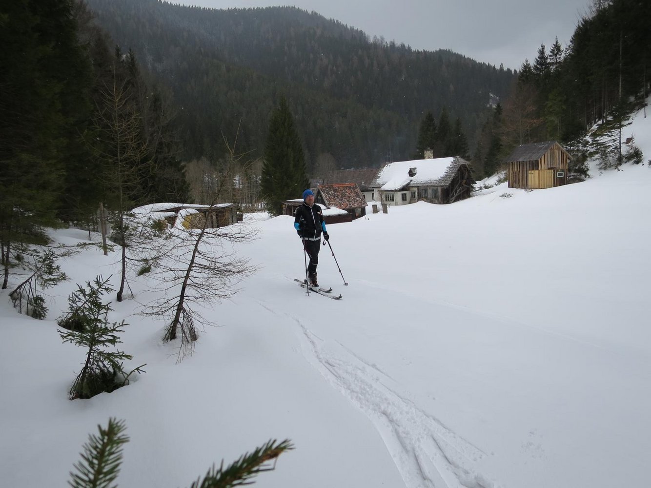 Großartige, bis dato eher unbekannte Skitour auf der Veitsch Nordseite. Die Skitour führt durch einen engen, sich windenden Graben hinauf zur Ebenhütte und weiter über den Scheibenhang zum höchsten Punkt des Sperrkogels.