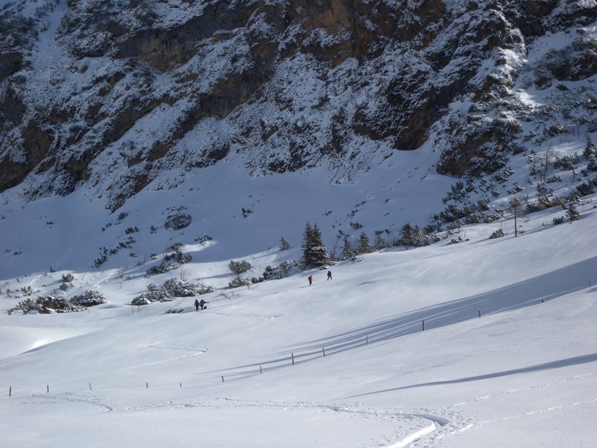 Sehr schwere Skitour, die man nur bei sicheren Schneeverhältnissen machen sollte. Es sollte auch genug Schnee liegen, da im oberen Teil sonst die Latschen rausschauen.