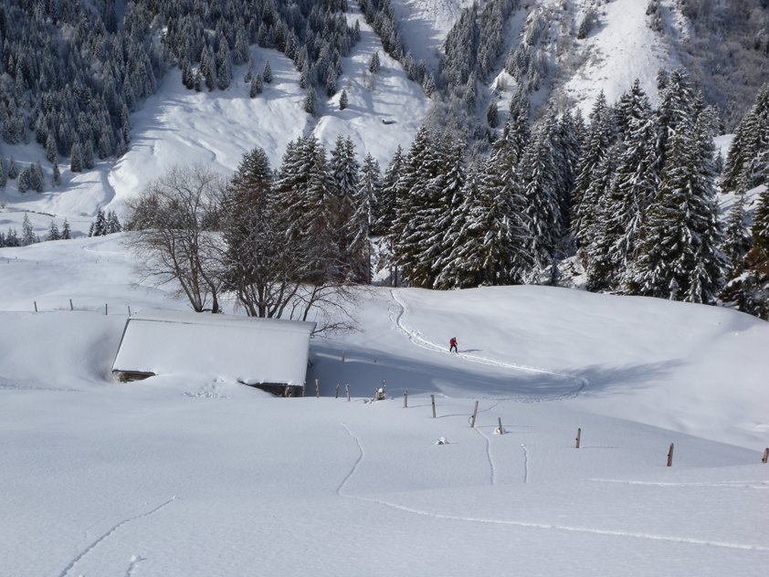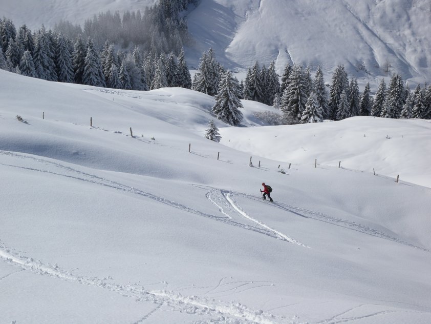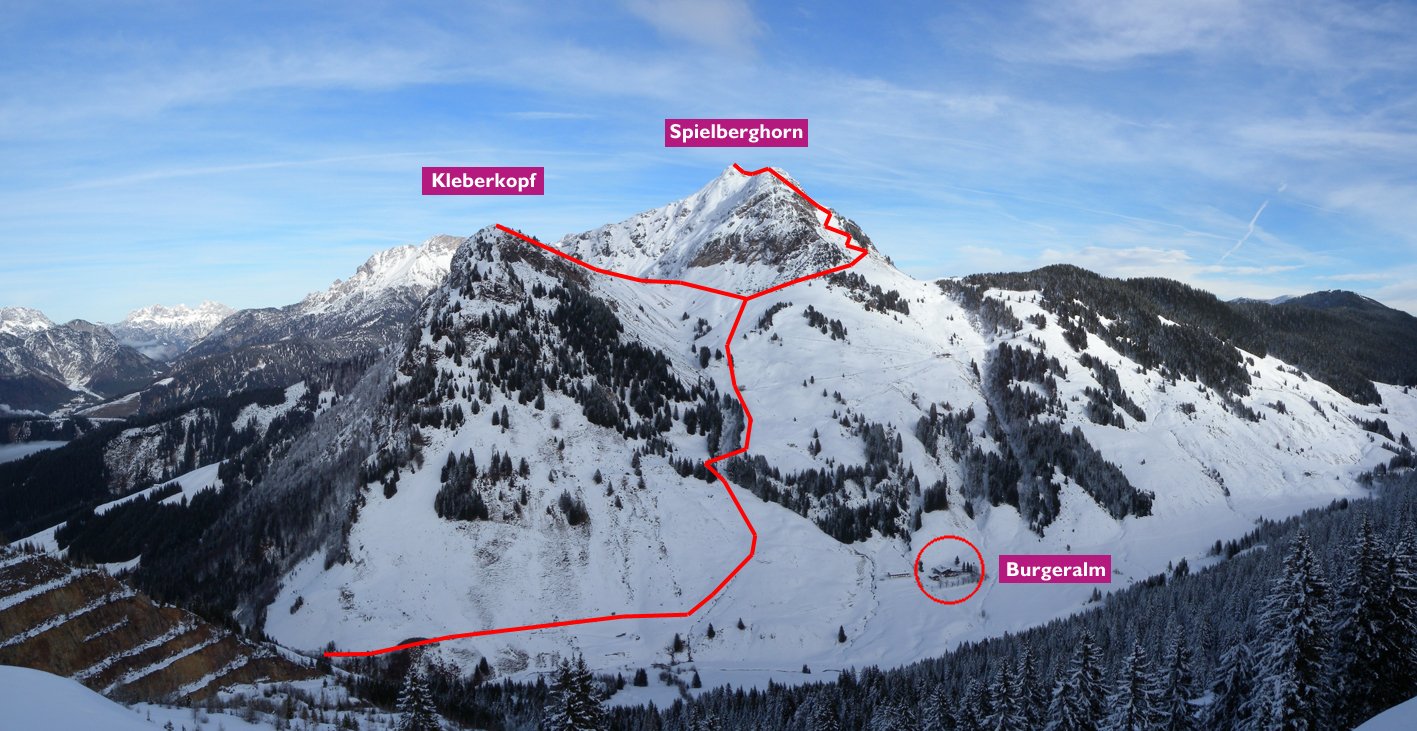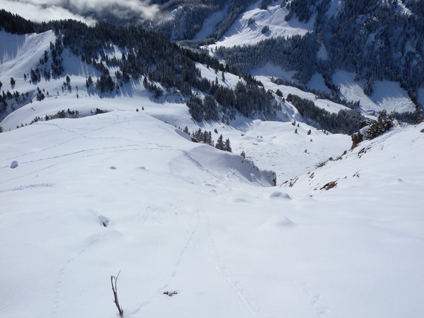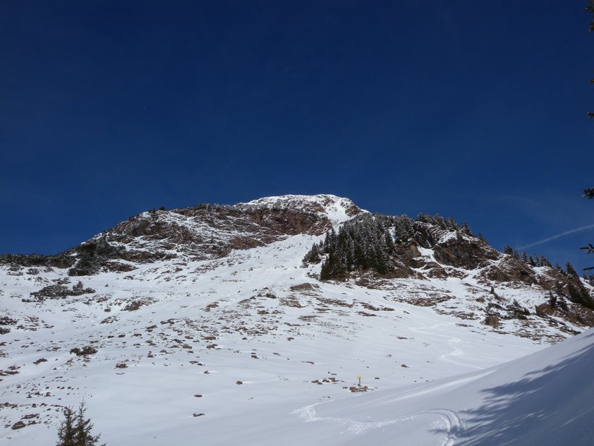 Anm.: Es wird auch über die extreme Nordflanke abgefahren, das sollte man sich aber vorher unbedingt anschauen (evtl. vom Gipfel des Kleberkopfes).