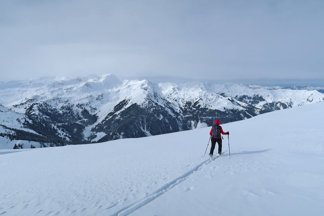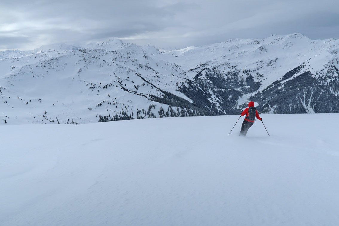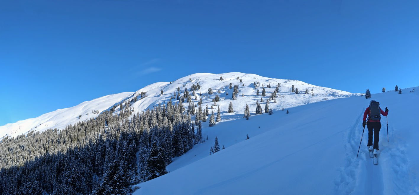 Schöne sonnige Tour mit wunderbaren Hängen - die direkte, südseitige Abfahrt sollte aber nur bei sicheren Lawinenverhältinssen gemacht werden. Wenn die Lawinengefahr höher ist, bietet sich immer noch der etwas längere Anstieg über das Schneegrubenschartl und den Südostgrat an.