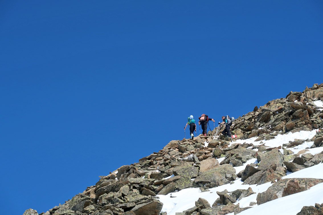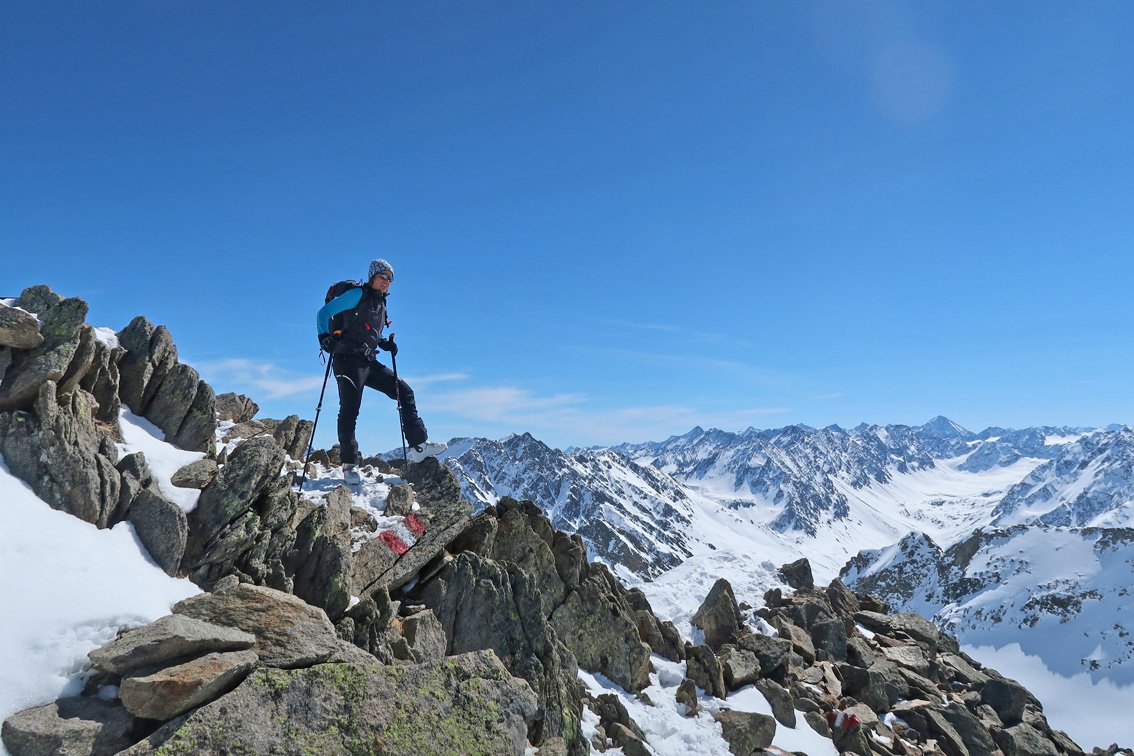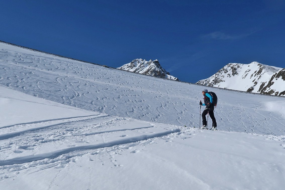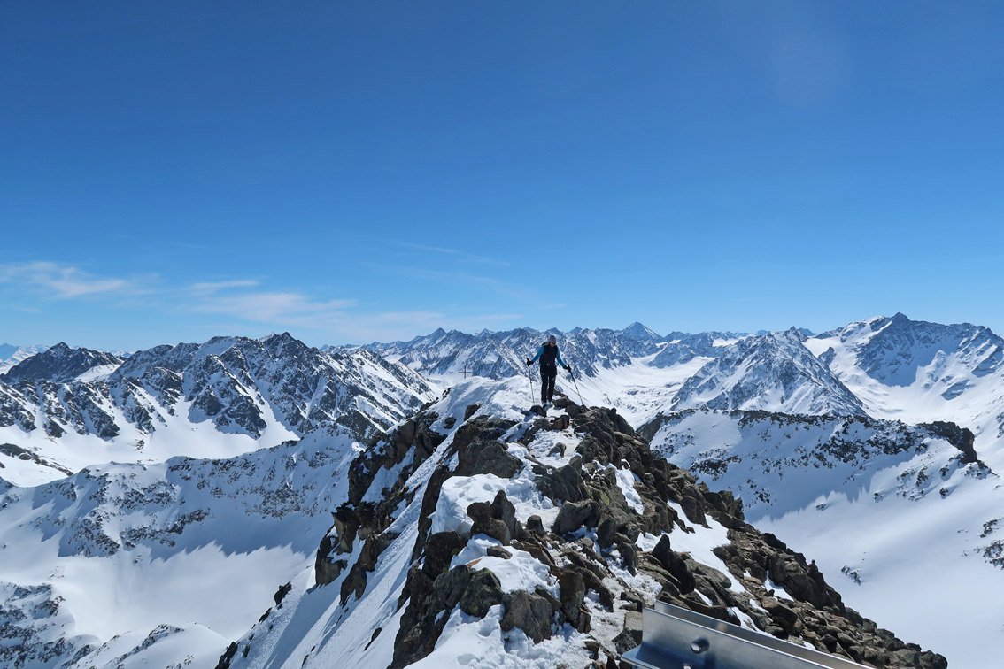Auf den höchsten Gipfel im Skitourengebiet Kühtai - den Sulzkogel - führt eine perfekte 3000er-Skitour. Bis auf zwei steilere Passagen ist die Tour leicht und auch der breite Gipfelgrat ist meist problemlos zu begehen.
