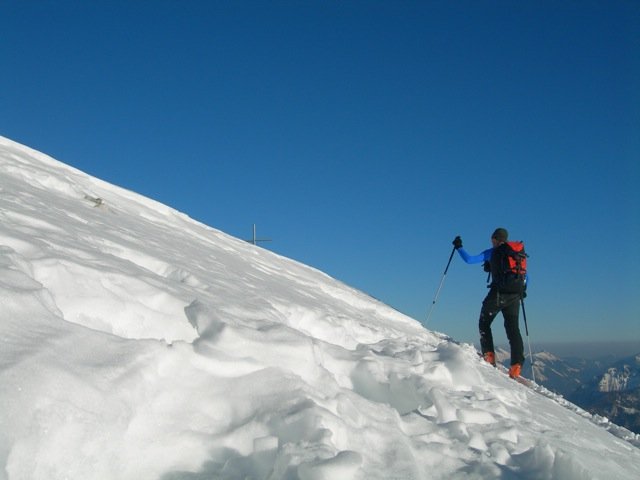 am 12.02.2008 nach ca. 3Std. Gehzeit am Gipfel - jetzt warte eine Traumabfahrtüber das Gr. Kühtal (SW-Abfahrt),