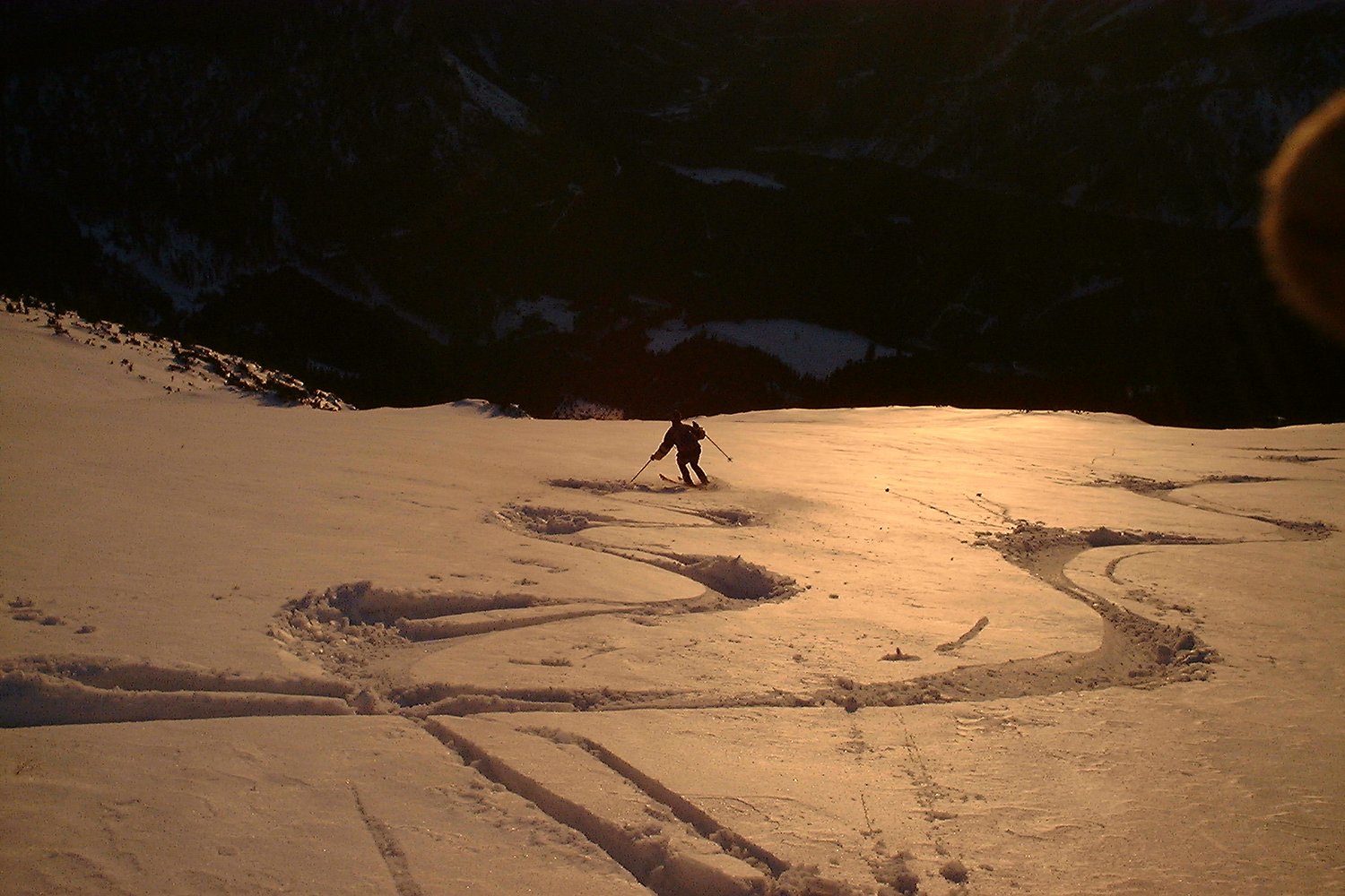 Hier ist wunderschön der Aufstieg über die Ennstaler Hütte bzw. die Abfahrt über das Gr. Kühtal zu sehen (12.02.2008),